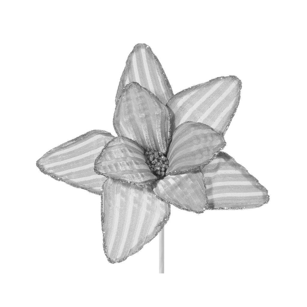 Stříbrný vánoční květ na stromeček 24 cm - sada 6 ks