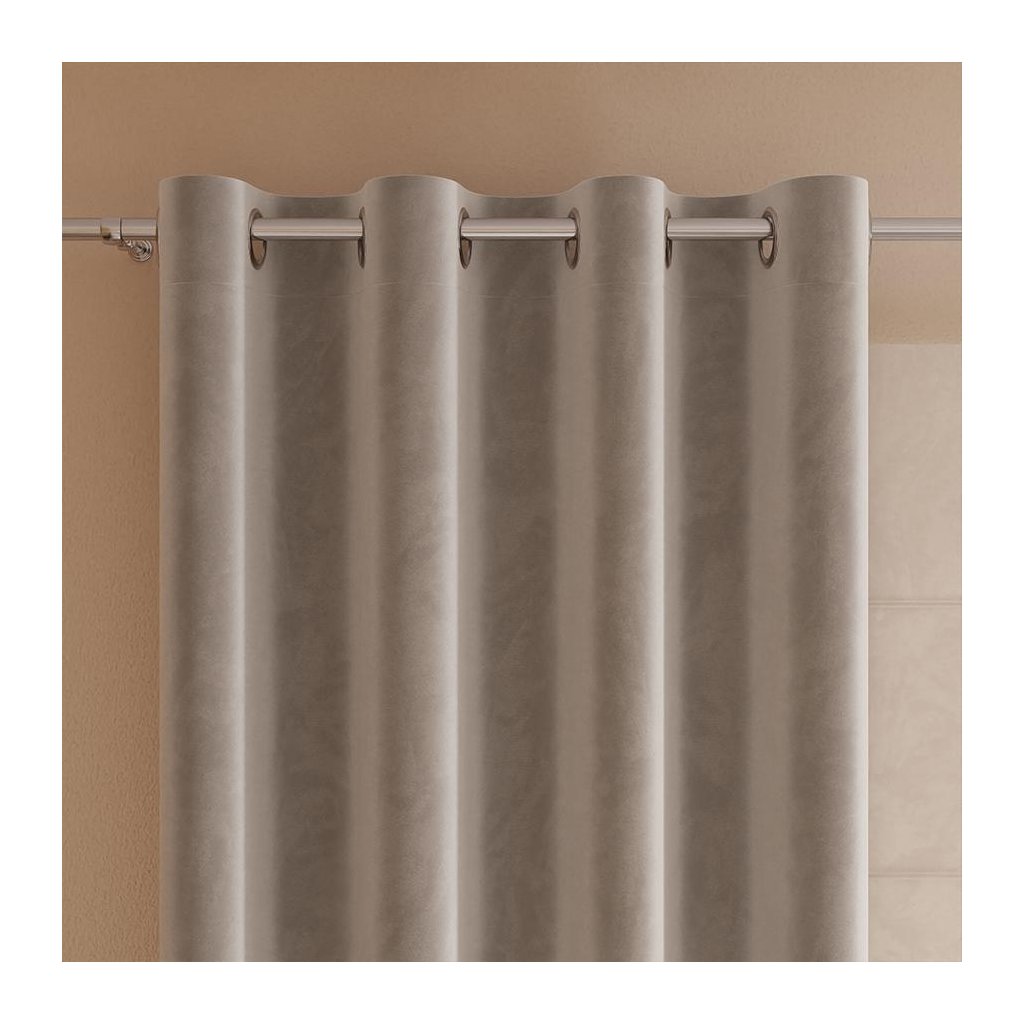 Světle hnědý sametový závěs na kroužcích VELVI 140x160 cm