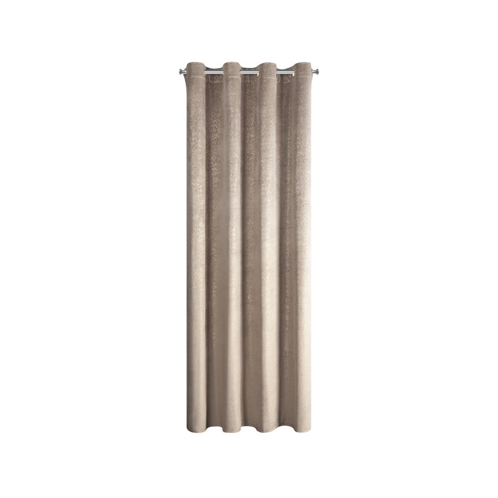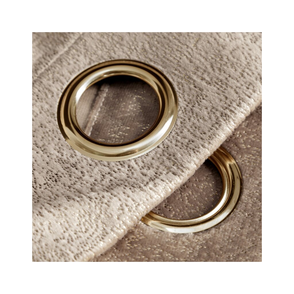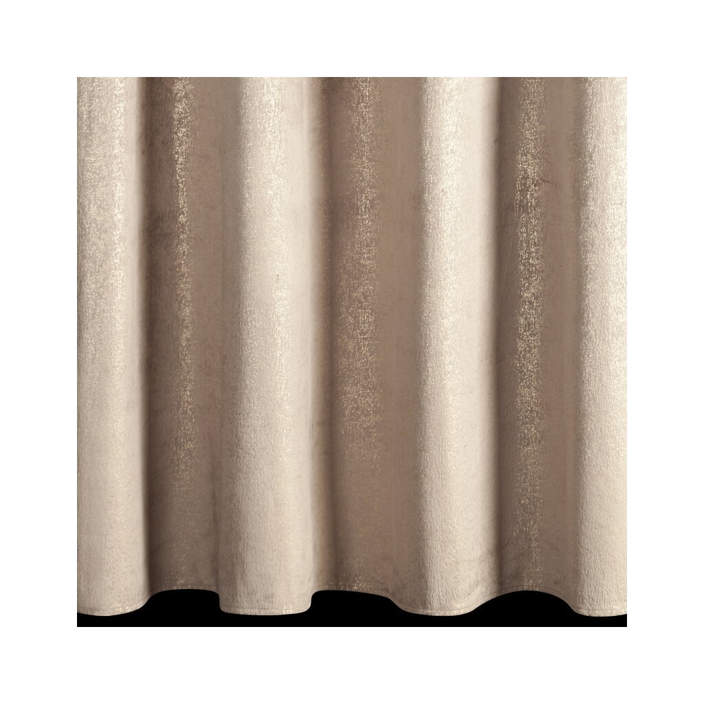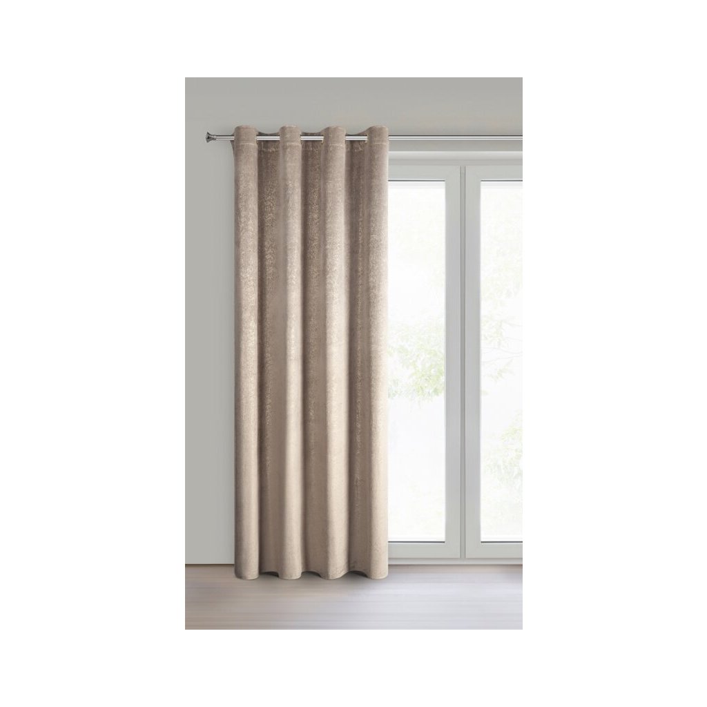Světle hnědý sametový závěs se zlatým potiskem na kroužcích BETHY 135x250 cm