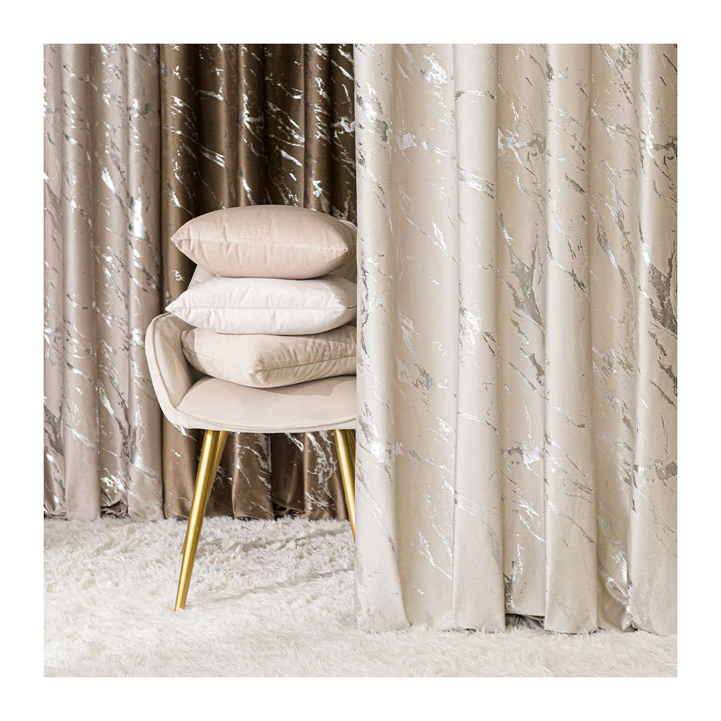 Luxusní světlokrémový sametový závěs MARMA se stříbrným potiskem je dokonalým spojením elegance a moderního stylu. Jemný samet s jemným leskem vytváří příjemnou atmosféru a působí mimořádně sofistikovaně. Stříbrný vzor na povrchu dodává prostoru výrazný, ale stále vkusný akcent , který zaujme na první pohled.