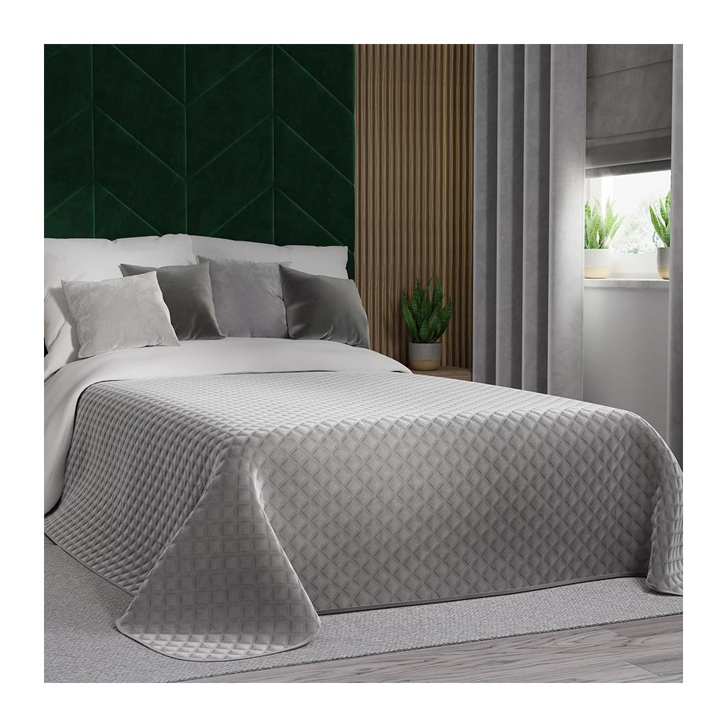 Světle šedý sametový přehoz na postel VELVI 220x240 cm