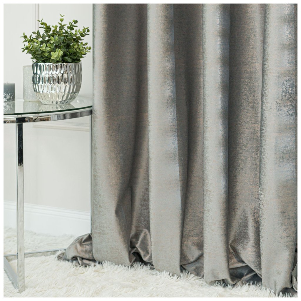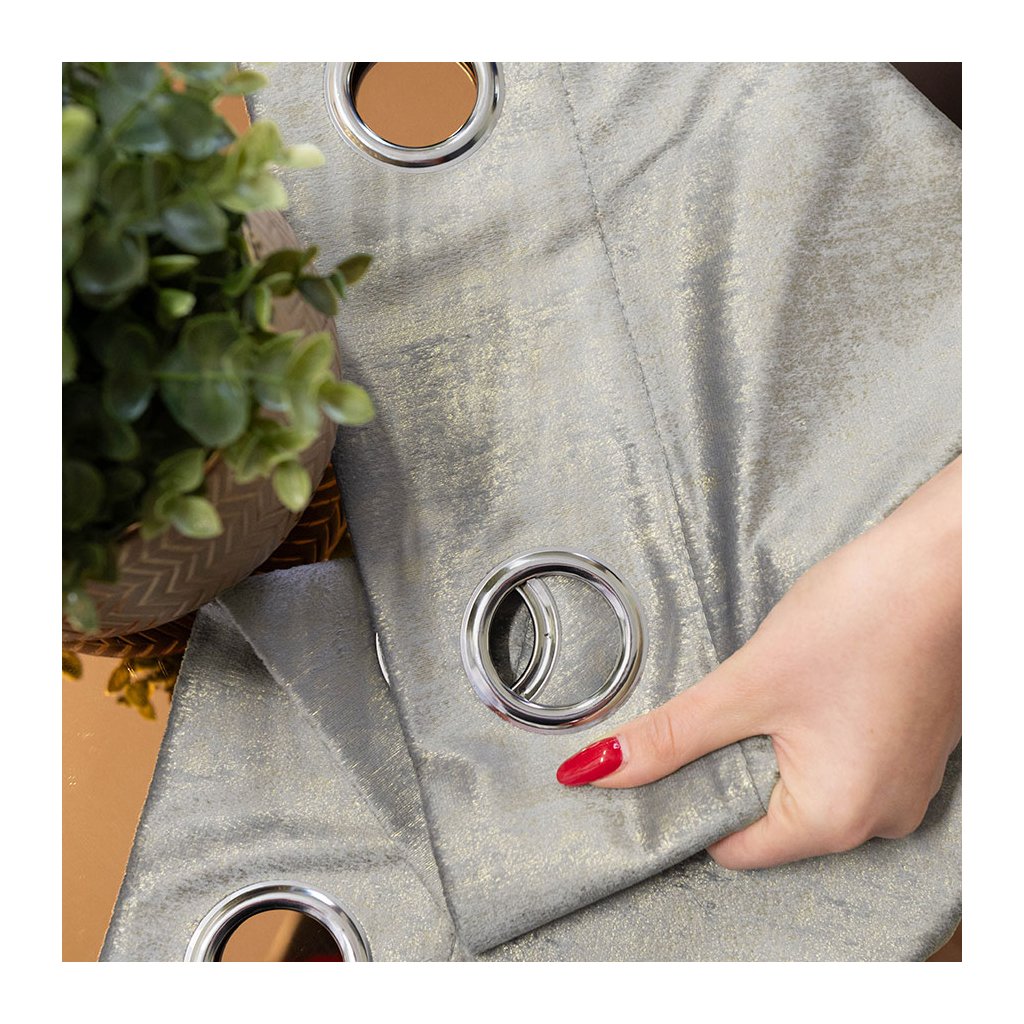 Světle šedý sametový závěs se zlatým potiskem na kroužcích ELEONORA 140x250 cm