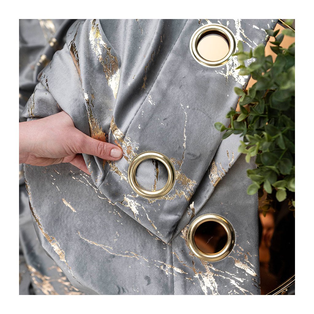 Světle šedý sametový závěs se zlatým potiskem na kroužcích MARMA 140x250 cm