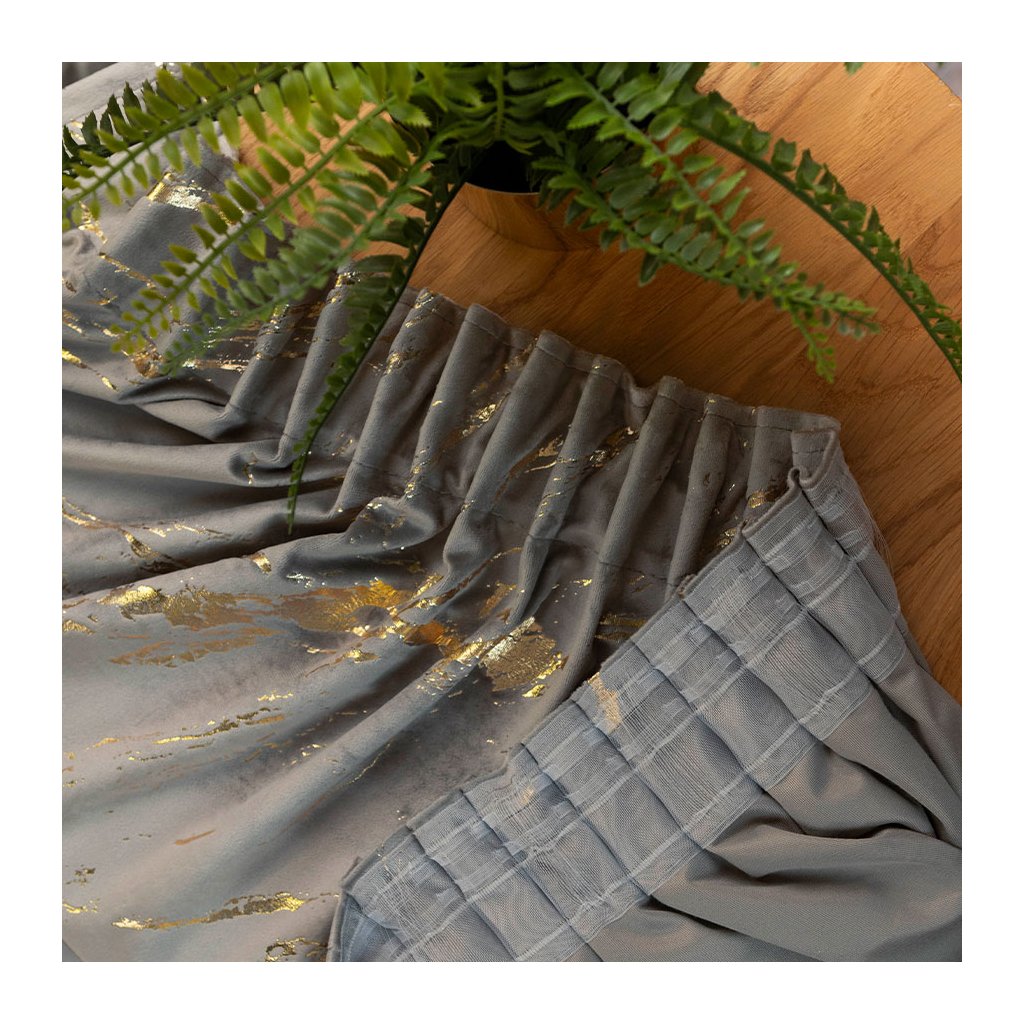 Světle šedý sametový závěs se zlatým potiskem na pásce MARMA 140x250 cm
