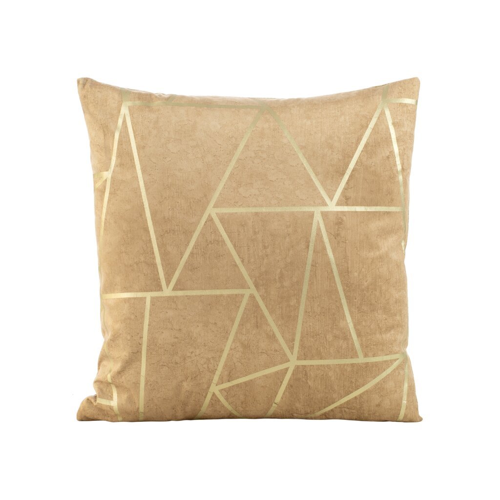 Světlobéžový sametový povlak na polštář se zlatým geometrickým potiskem MOLY 45x45 cm