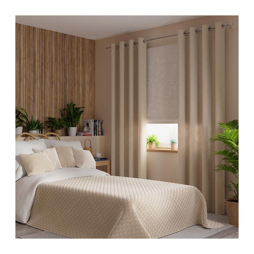 Světlobéžový sametový závěs na kroužcích VELVI 140x240 cm