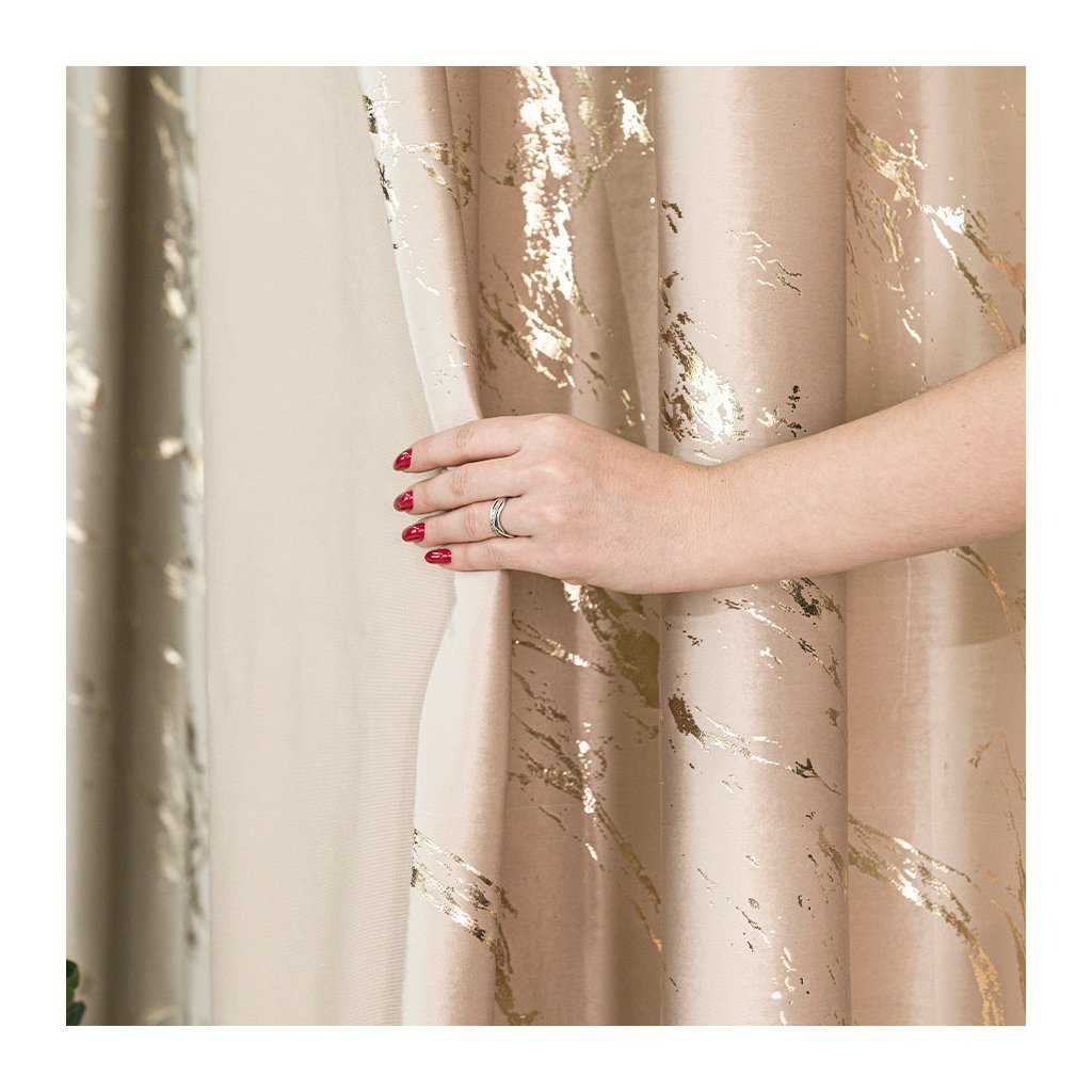 Luxusní sametový závěs MARMA s metalickým mramorovým potiskem propojí eleganci a moderní styl . Hustě tkaný velvet krásně splývá, má jemný noblesní lesk a na okně vytváří galerijní efekt – výrazný, ale stále vkusný akcent.