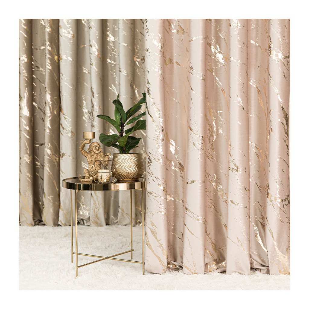 Hotový produkt – rozbalíte a zavěsíte . Materiál 100% polyester s gramáží cca 210 g/m² je tvarově stálý , příjemný na dotek a drží luxusní spád po celý den. MARMA okamžitě povýší interiér na sofistikovaný, harmonický celek.