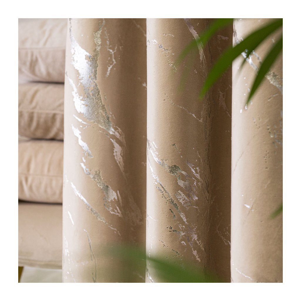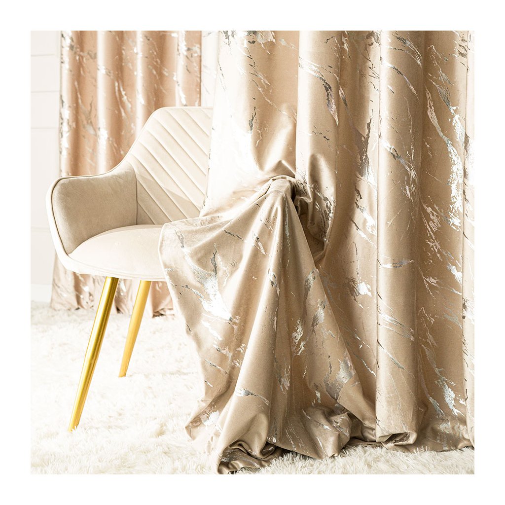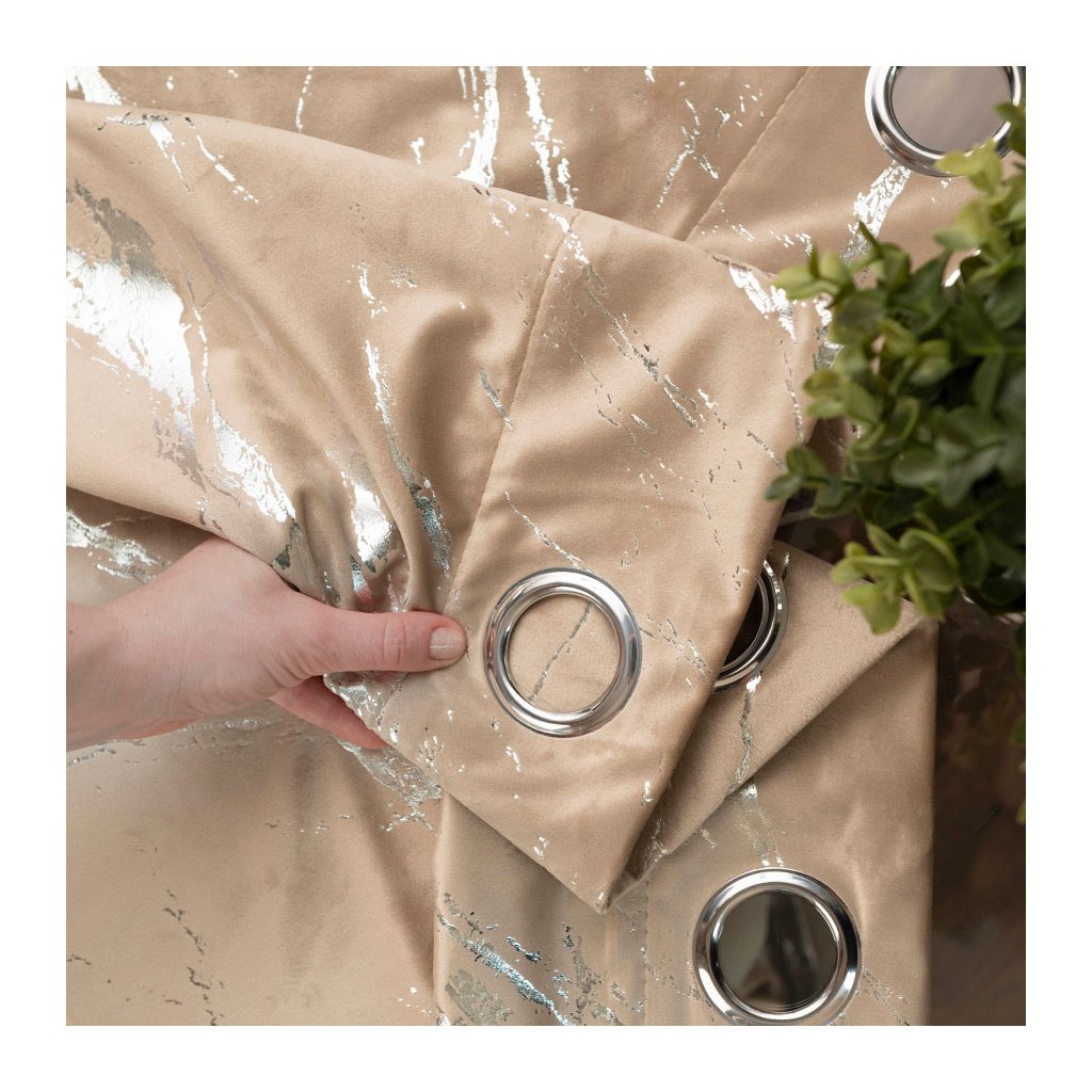 Tmavě béžový sametový závěs se stříbrným potiskem na kroužcích MARMA 140x250 cm