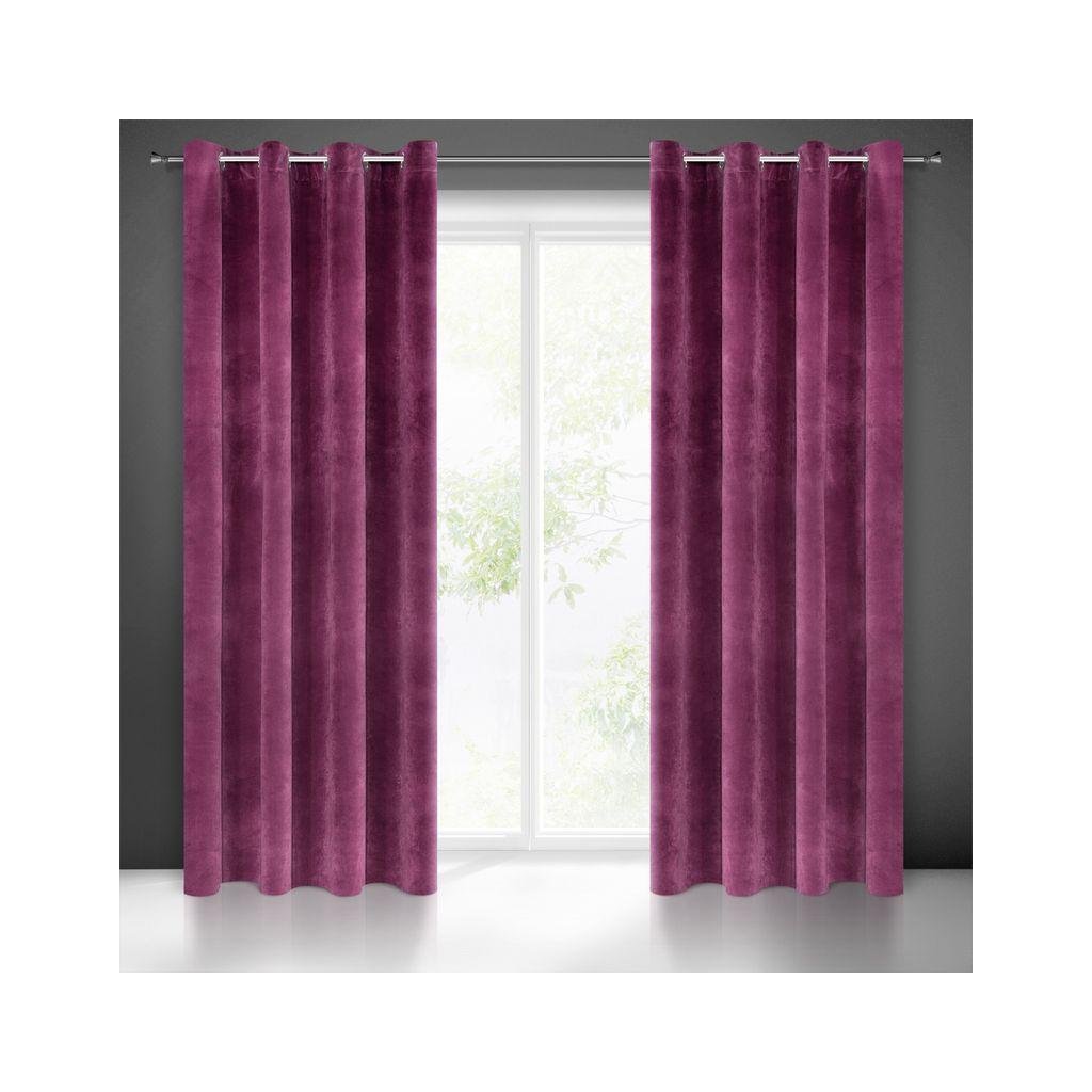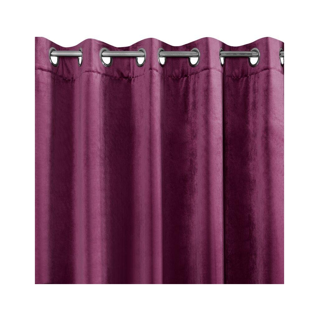 Luxusní tmavě fialový závěs RIA ze silnějšího sametu a jemnou sametovou strukturou dodá interiéru útulnost. Šířka: 140 cm, délka: 250 cm. Gramáž: 290 g/m2. Materiál: 100% polyester - samet. Lehké žehlení. Praktické zavěšení na kovové kroužky.
