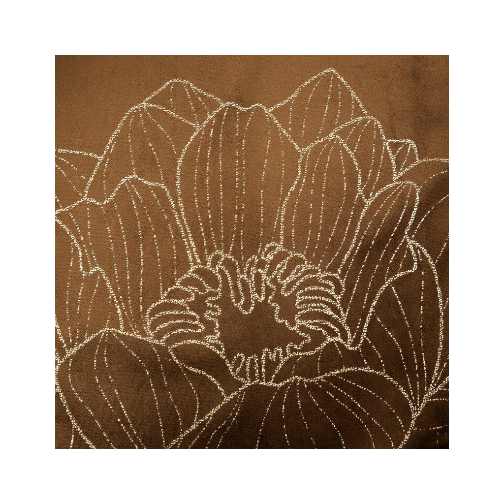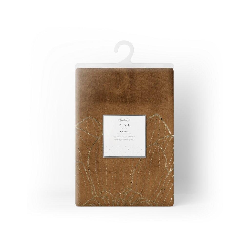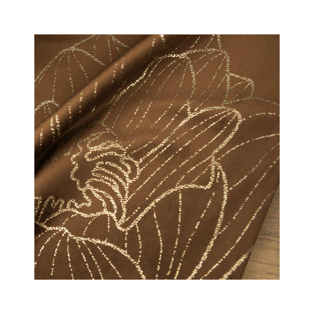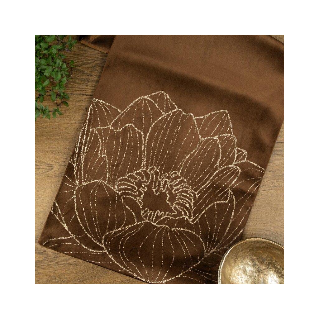 Tmavě hnědý sametový běhoun na stůl BLINK13 s květinovým vzorem 35x220 cm