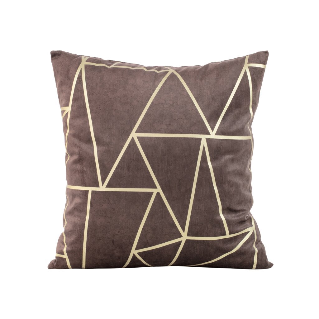 Tmavě hnědý sametový povlak na polštář se zlatým geometrickým potiskem MOLY 45x45 cm