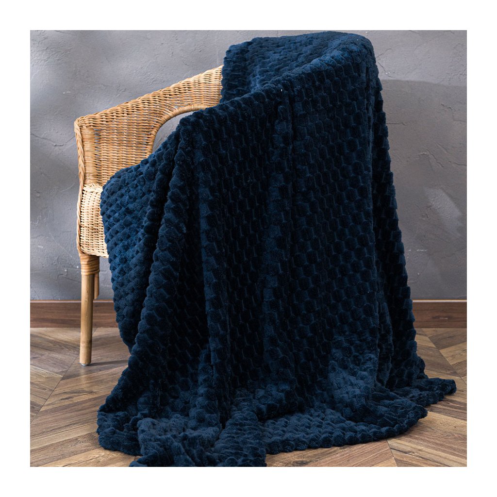 Tmavě modrá deka z huňatého mikroplyše bublinkový 3D vzor MIKOS 160x200 cm