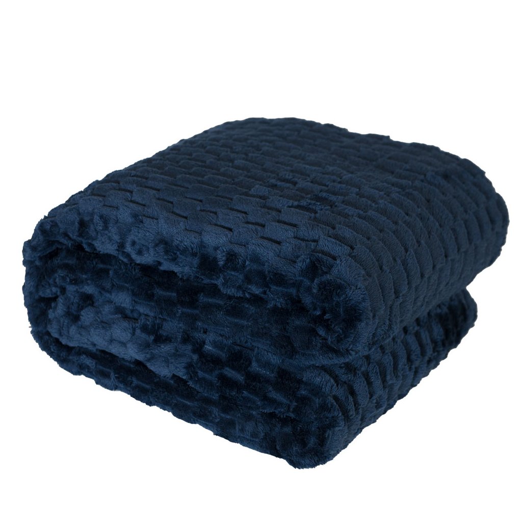 Tmavě modrá deka z huňatého mikroplyše bublinkový 3D vzor MIKOS 200x220 cm