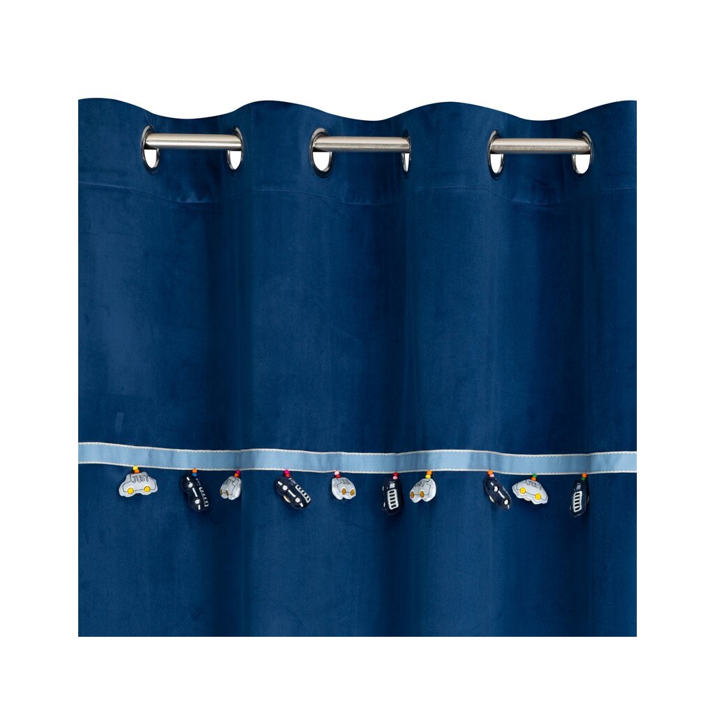 Tmavě modrý dětský sametový závěs s motivem 3D autíček na kroužcích CAR 140x250 cm