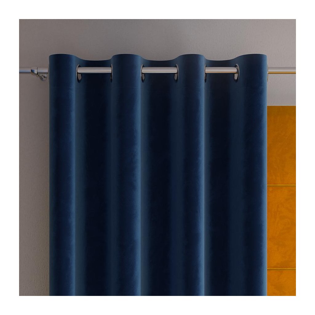 Tmavě modrý sametový závěs na kroužcích VELVI 140x230 cm