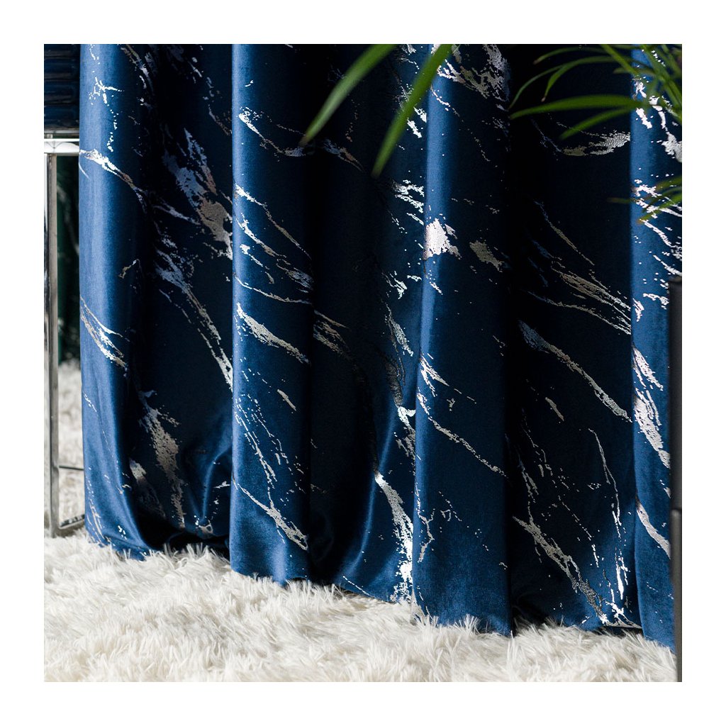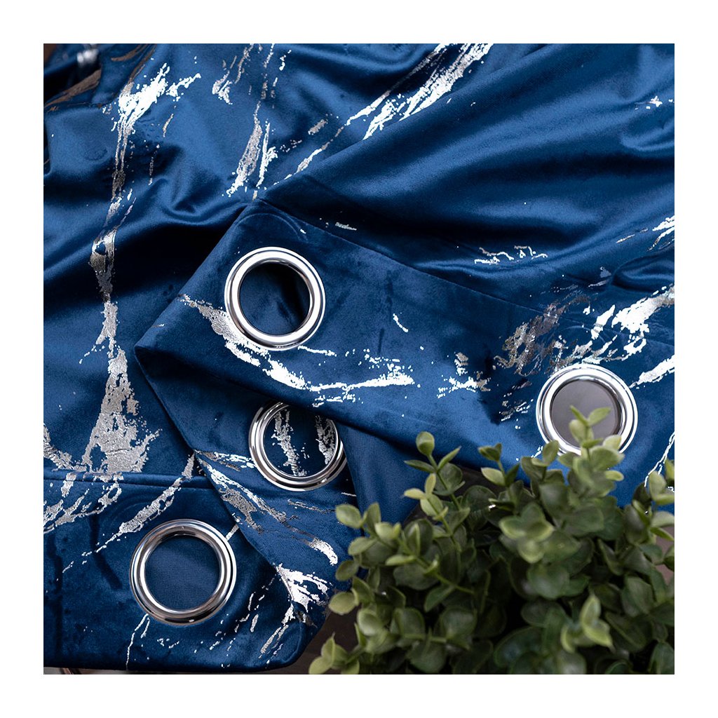 Tmavě modrý sametový závěs se stříbrným potiskem na kroužcích MARMA 140x250 cm