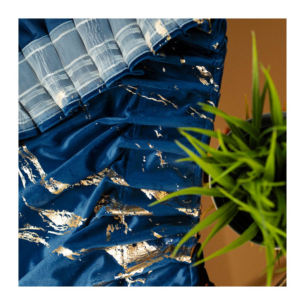 Tmavě modrý sametový závěs se zlatým potiskem na pásce MARMA 140x250 cm