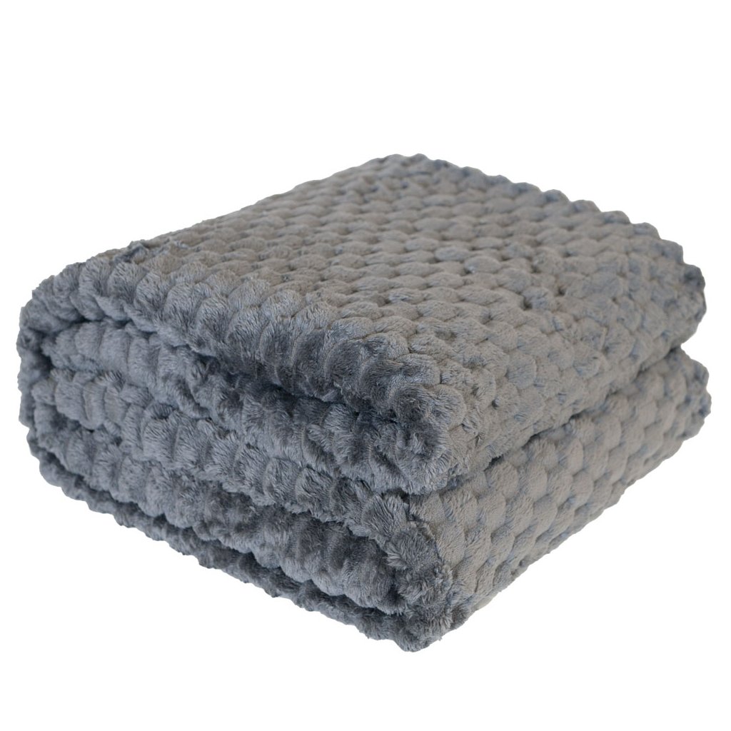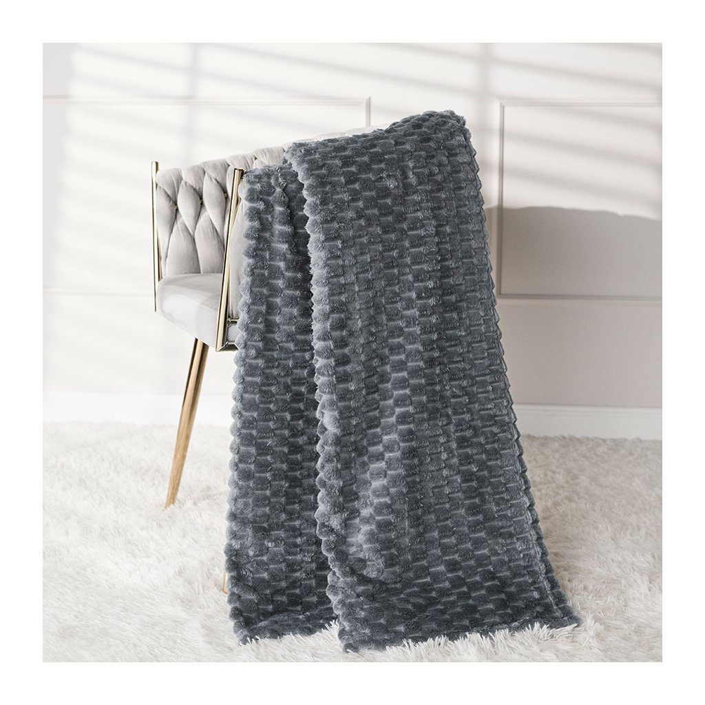 Tmavě šedá deka z huňatého mikroplyše bublinkový 3D vzor MIKOS 160x200 cm