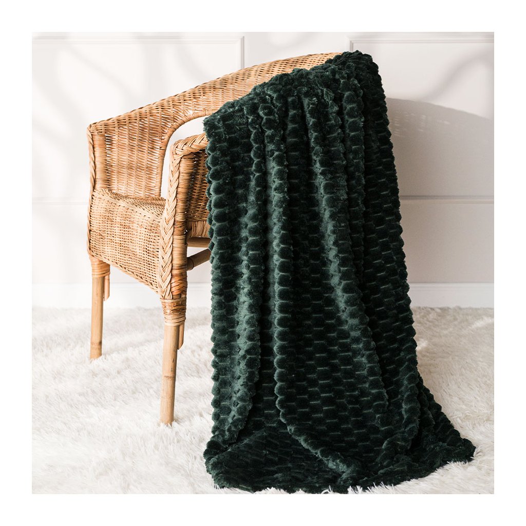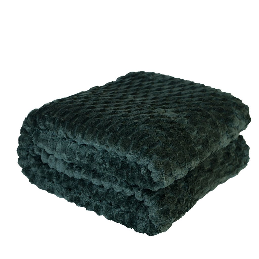 Tmavě zelená deka z huňatého mikroplyše bublinkový 3D vzor MIKOS 160x200 cm