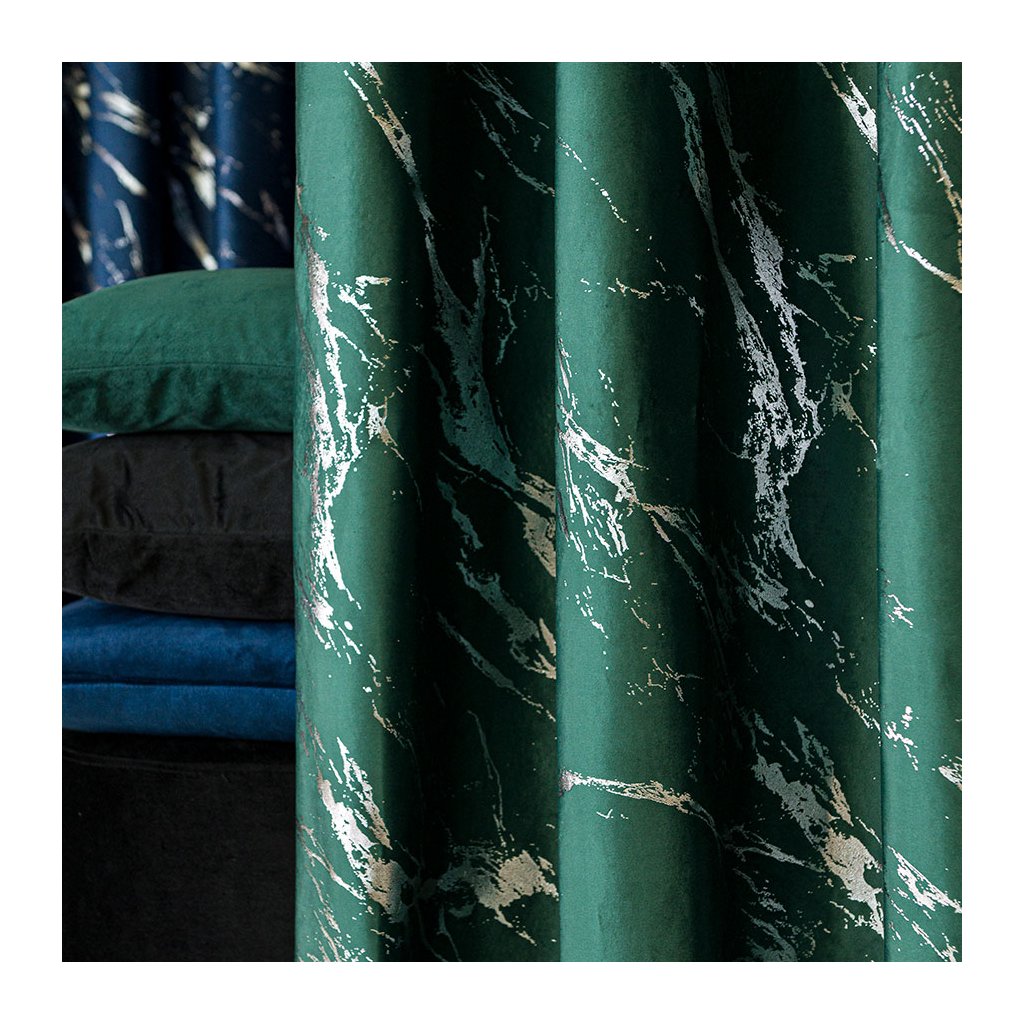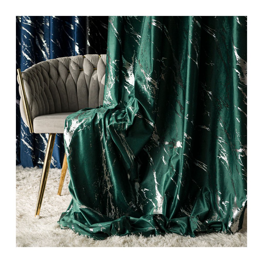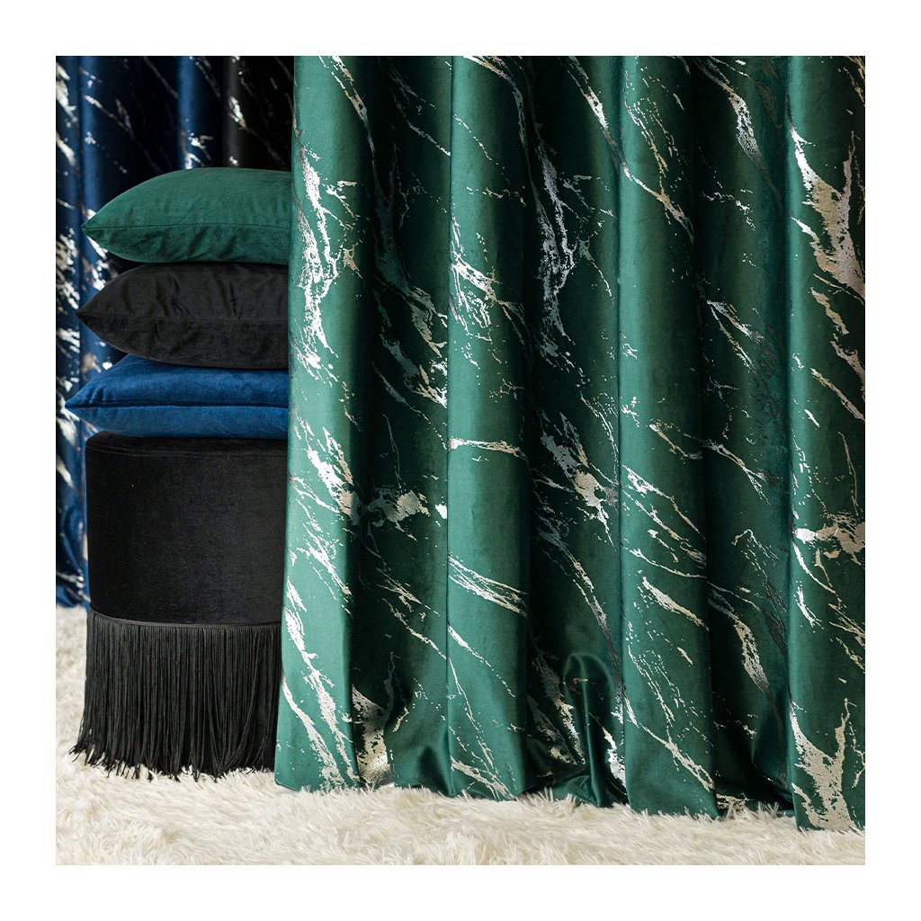 ✅ MARMA – luxusní sametový závěs s metalickým mramorovým potiskem pro elegantní akcent.