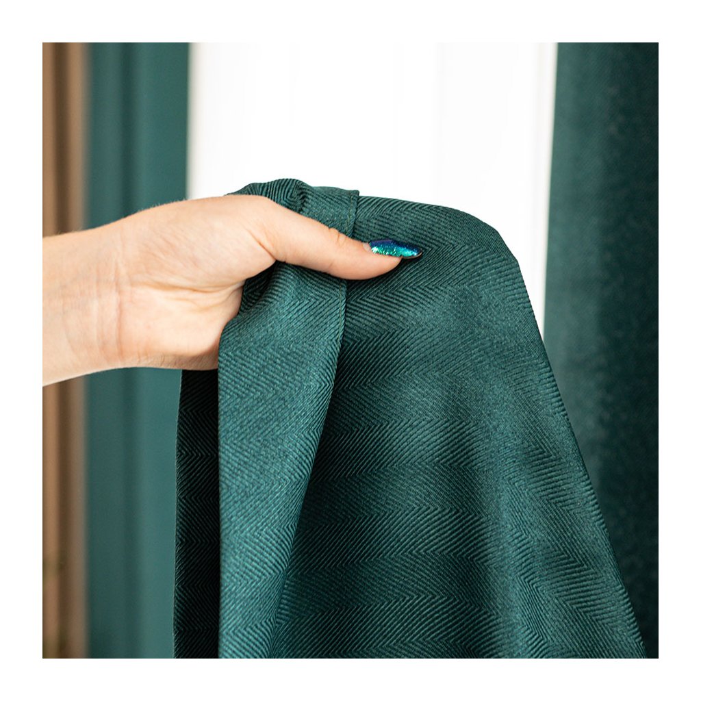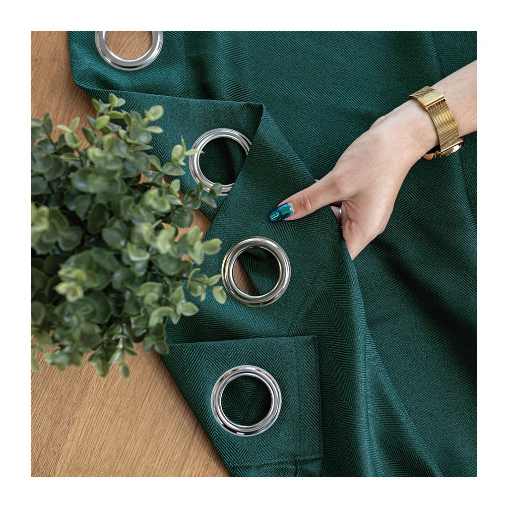 Tmavě zelený závěs se vzorem rybí kost na kroužcích JODÍLKA 140x250 cm