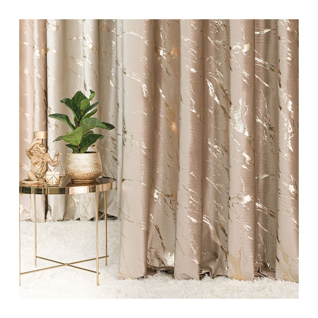 Polozatemňovací provedení přirozeně zjemní denní světlo , omezí nežádoucí lesk a přinese více soukromí . Bohaté pravidelné záhyby zútulní prostor, potisk s metalickými žilkami dodá hloubku a dynamiku – ideální do obývacího pokoje, ložnice i pracovny.