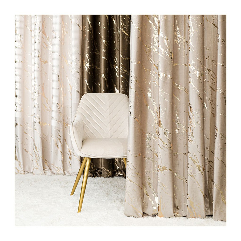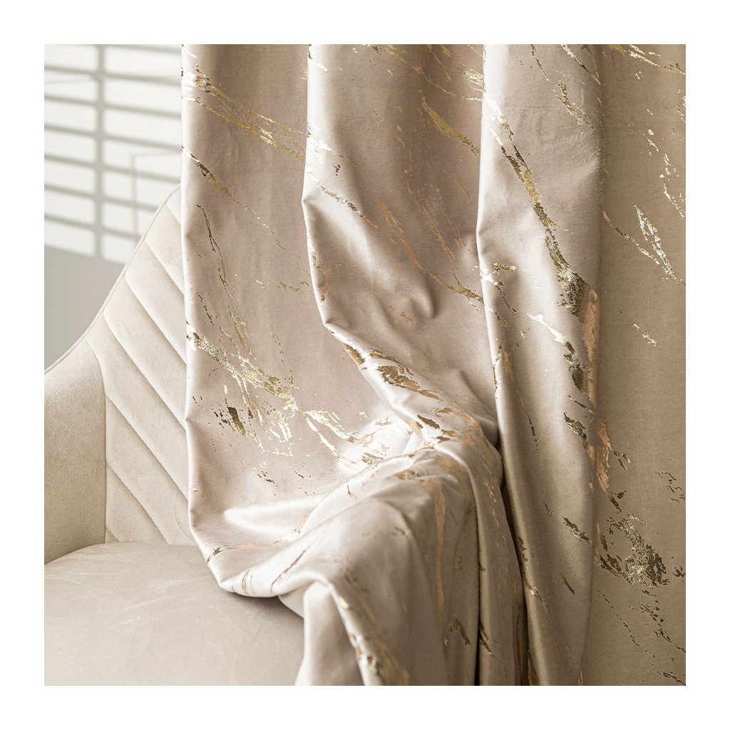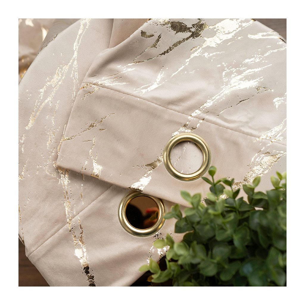 Tmavokrémový sametový závěs se zlatým potiskem na kroužcích MARMA 140x250 cm