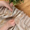 Tmavokrémový sametový závěs se zlatým potiskem na pásce MARMA 140x250 cm
