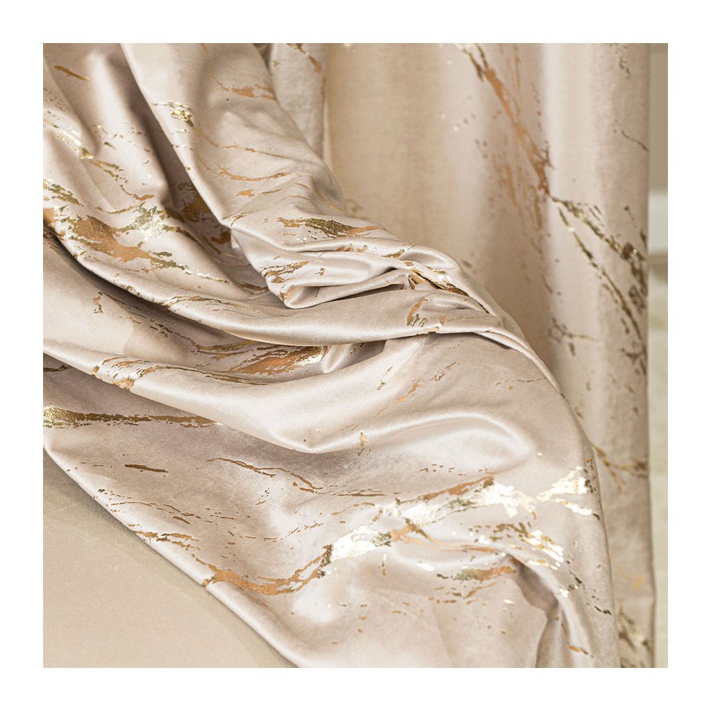 Tmavokrémový sametový závěs se zlatým potiskem na pásce MARMA 140x250 cm