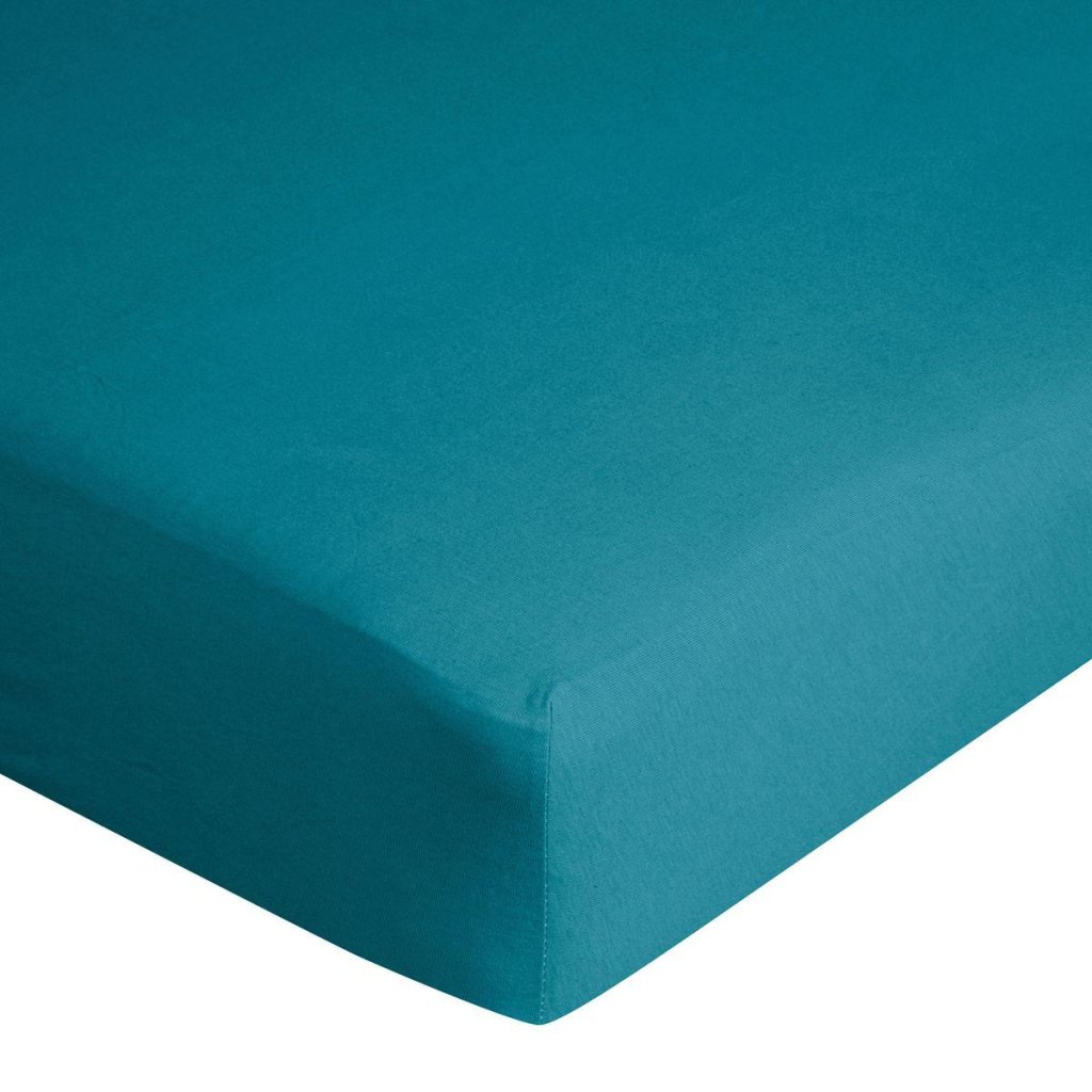 Tyrkysová napínací bavlněná jersey prostěradlo s gumičkou, šířka: 180 cm, délka: 200 cm, Gramáž: 125 g / m2. Složení: 100% bavlna