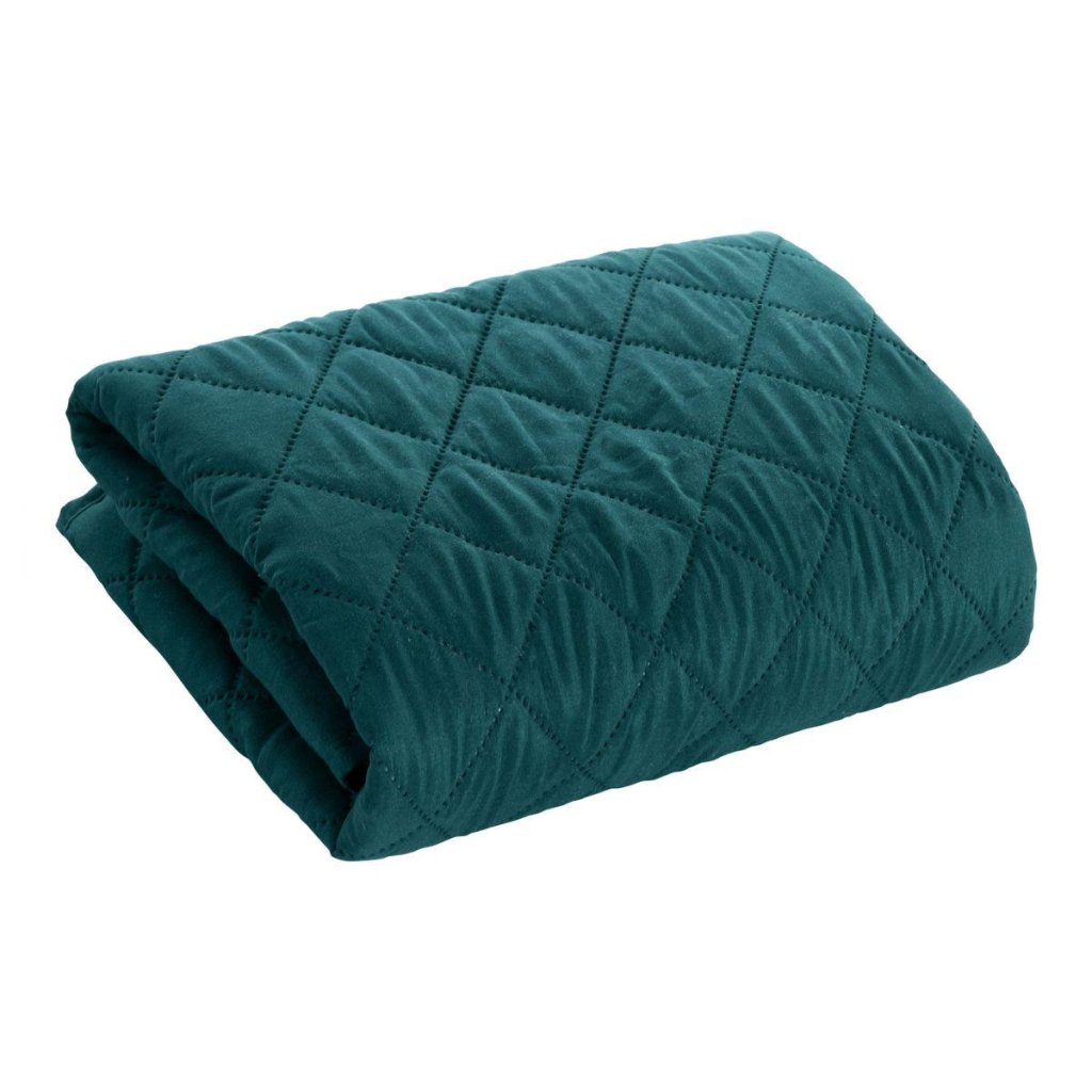 Přehoz na postel ALARA3 tmavotyrkysovej barvy s geometrickým vzorem vyraženým metodou hotpress. Lze prát v pračce. 170x210 cm