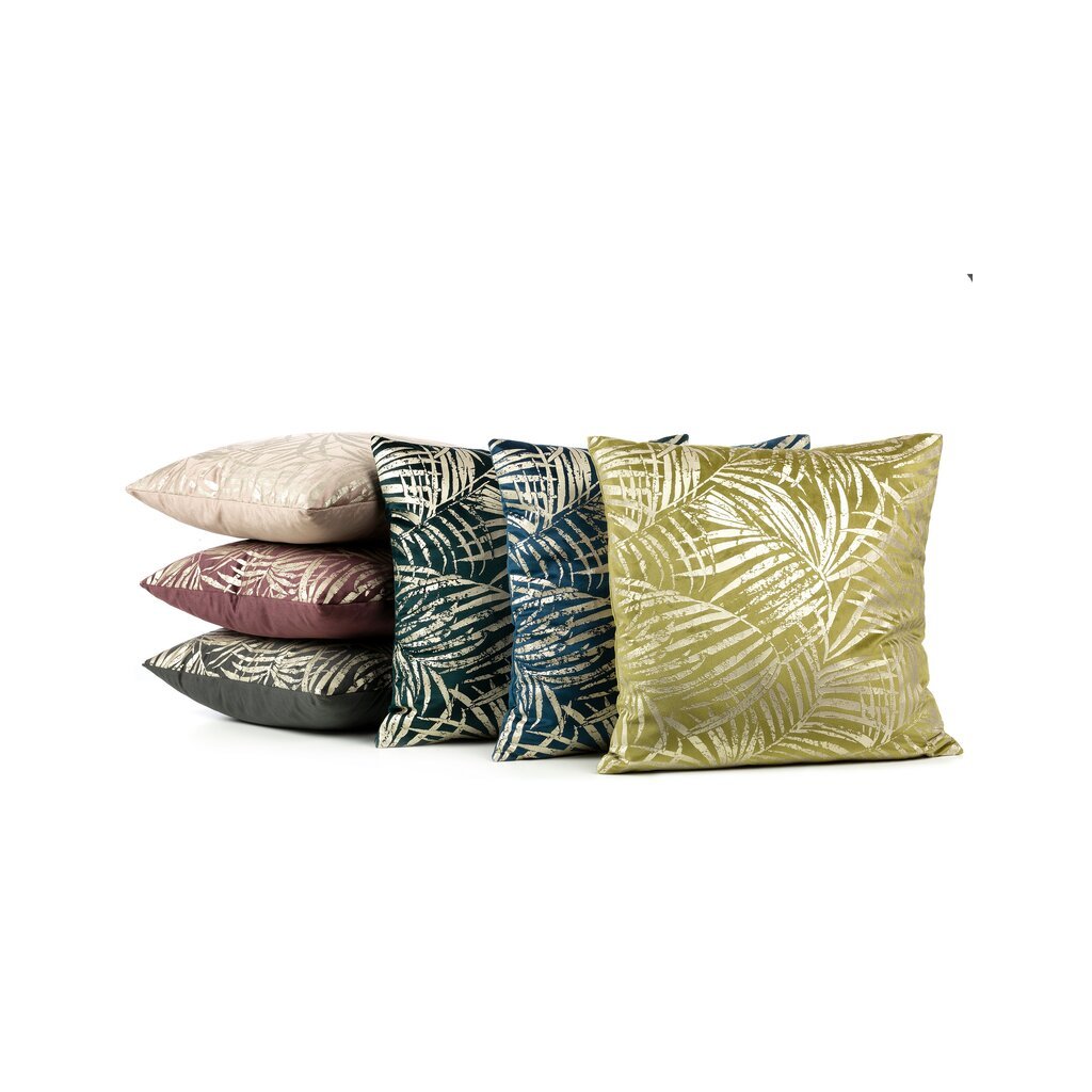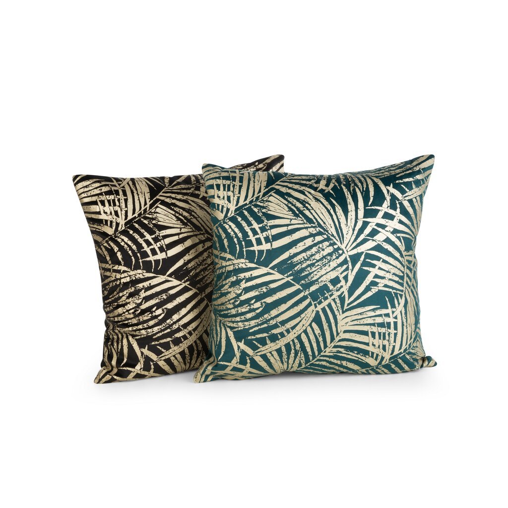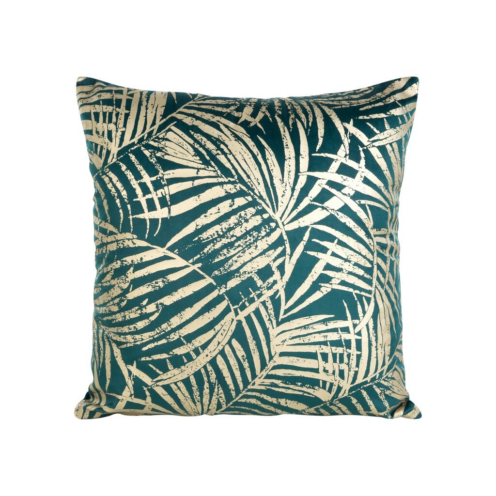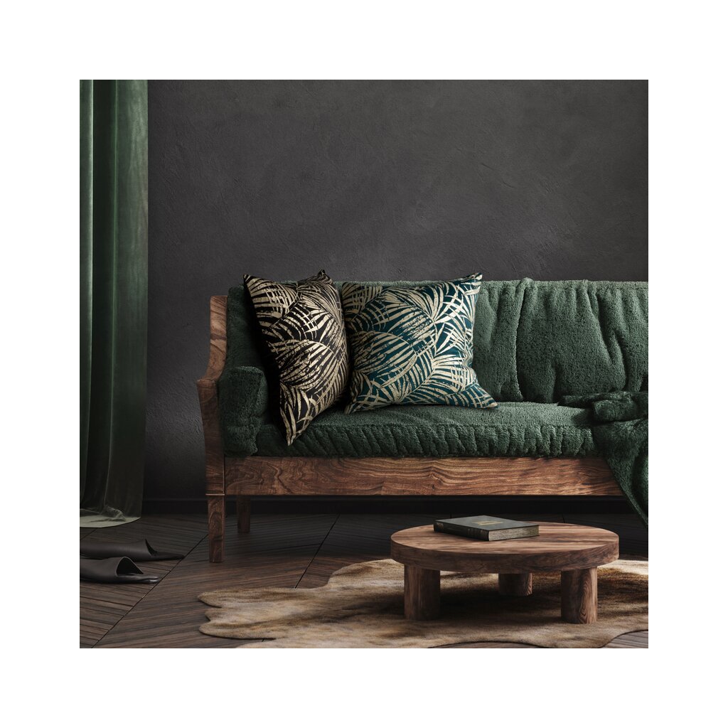 Tyrkysový sametový povlak na polštář se zlatým potiskem botanických listů VERONA 45x45 cm
