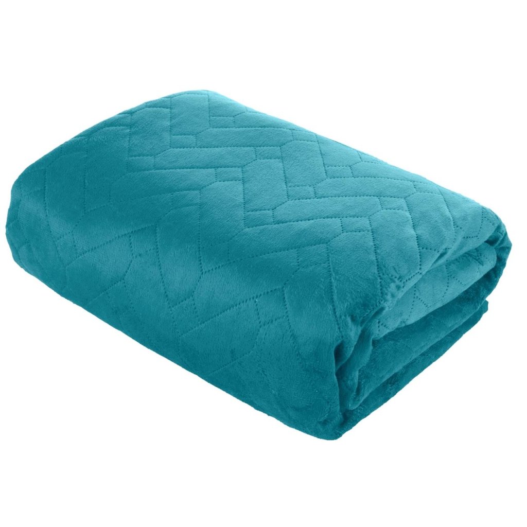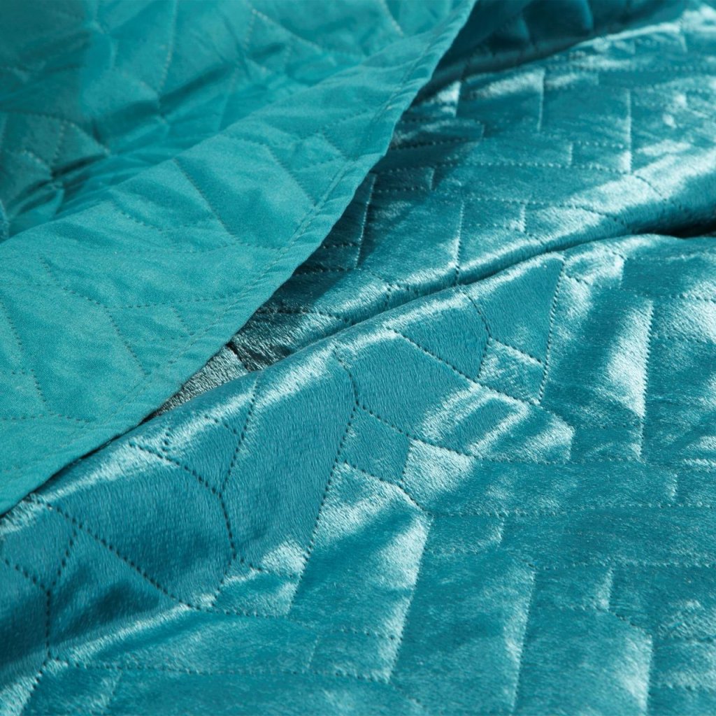 Sametový přehoz tyrkysové barvy prošívaný metodou hotpress s jemným geometrickým vzorem. 70x160 cm