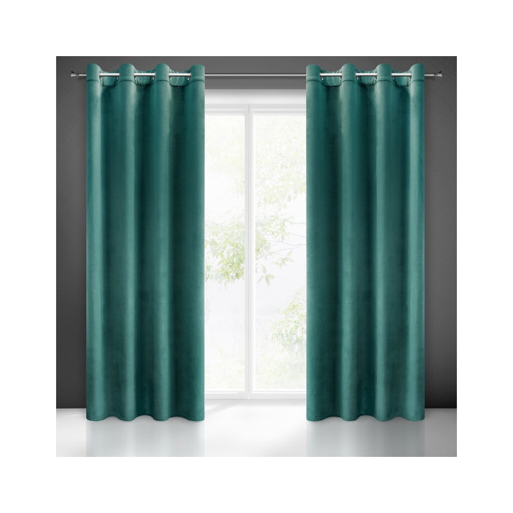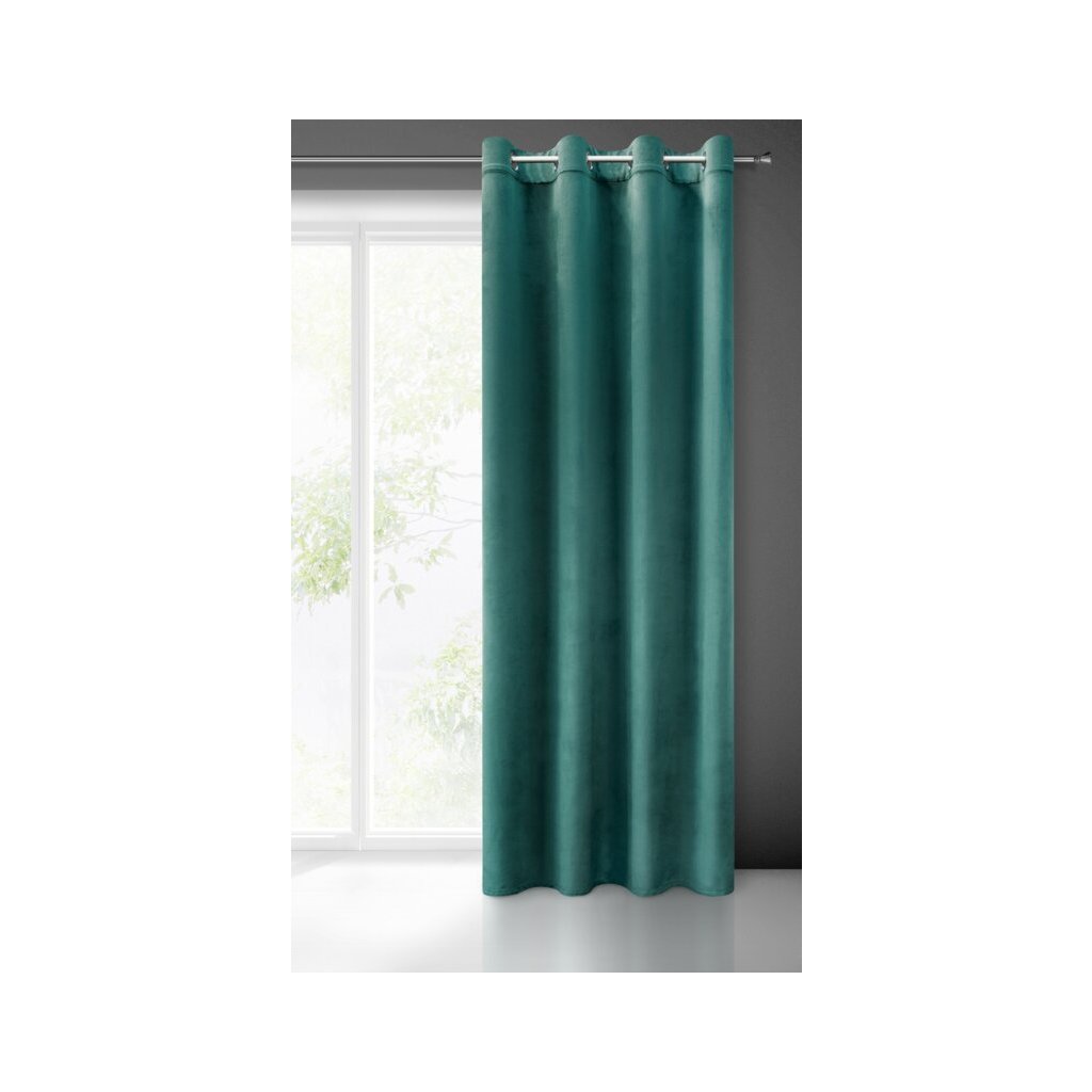 Tyrkysový zatemňovací závěs z matného sametu MELÁNÍ na kroužcích 140x250 cm