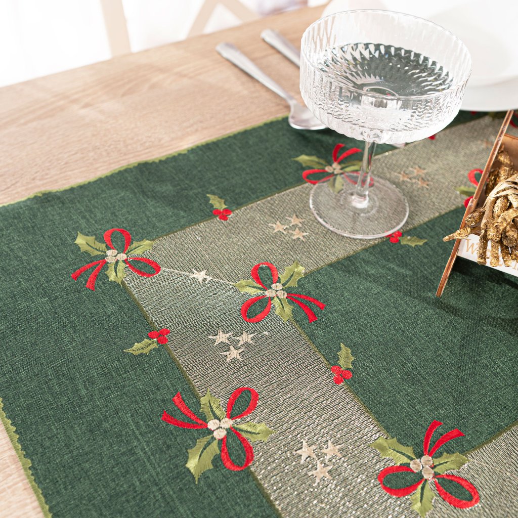 Vánoční běhoun s motivem vyšívaných mašlí BOW 40x140 cm