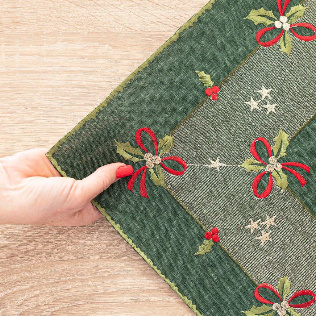 Vánoční běhoun s motivem vyšívaných mašlí BOW 85x85 cm