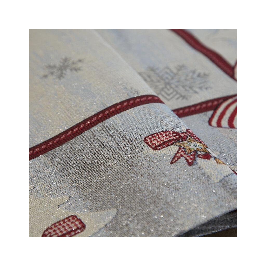 Vánoční gobelínový běhoun na stůl z hrubé pevné látky s tkaným vzorem dodá interiéru během nejkrásnějších svátků roku sváteční atmosféru klidu, lásky a radosti. Gramáž: 450 g/m2, Složení: 43% polyester 40% akryl 17% bavlna