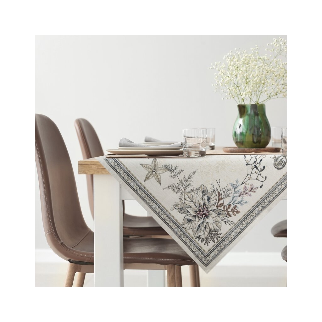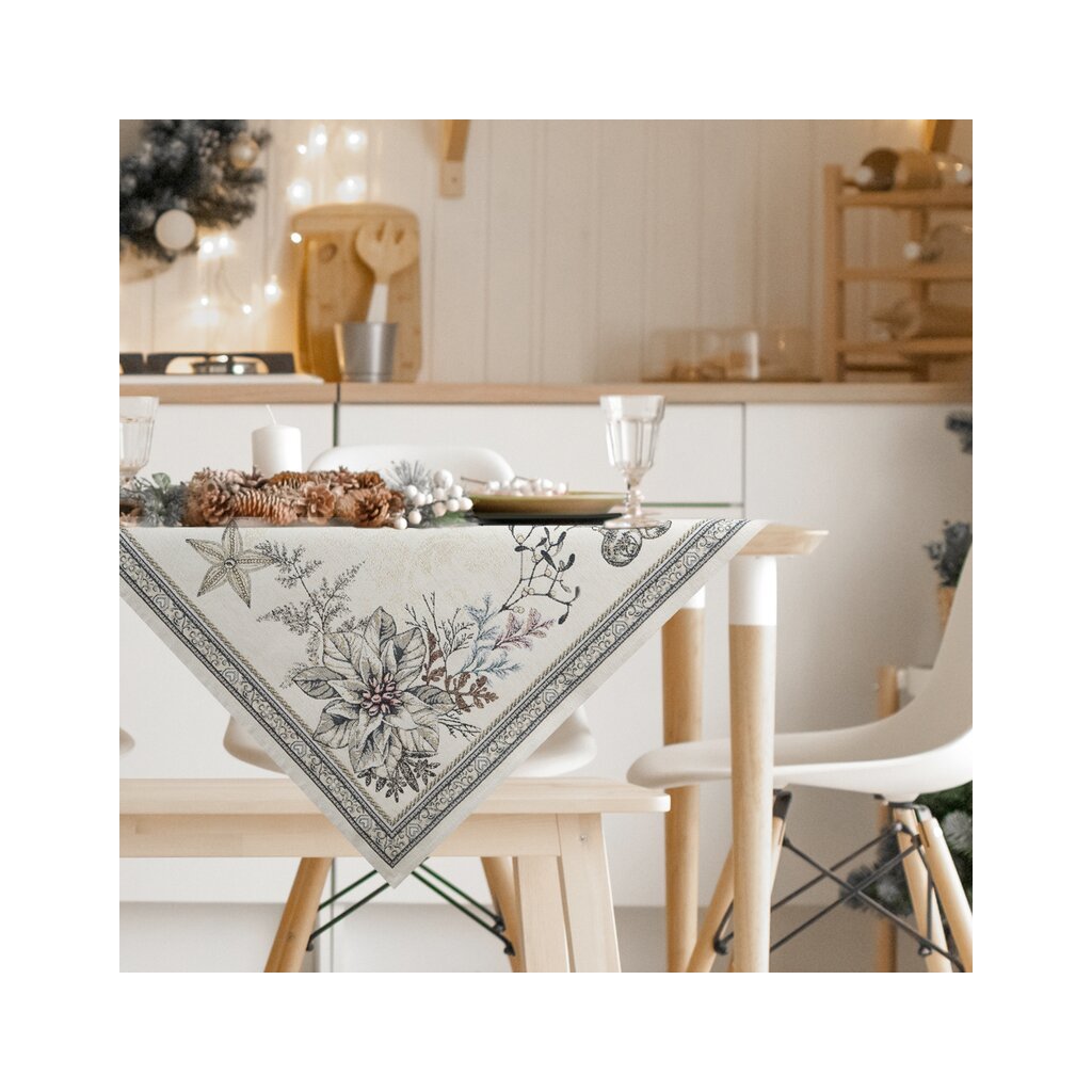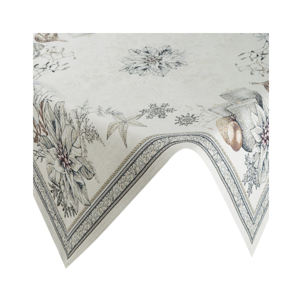 Vánoční ubrus s elegantním svátečním motivem promění váš stůl na útulné a slavnostní místo pro společné chvíle. Jemně zdobený dezén působí nadčasově a upraveně , na stole pěkně drží tvar a vytváří harmonický základ pro prostírání – od adventní snídaně až po Štědrou večeři.