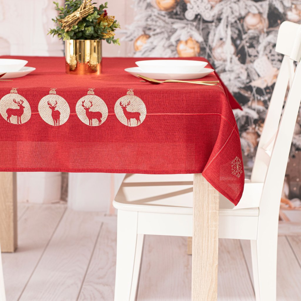 Vánoční ubrus s elegantním svátečním motivem promění váš stůl na útulné a slavnostní místo pro společné chvíle. Jemně zdobený dezén působí nadčasově a upraveně , na stole pěkně drží tvar a vytváří harmonický základ pro prostírání – od adventní snídaně až po Štědrou večeři.