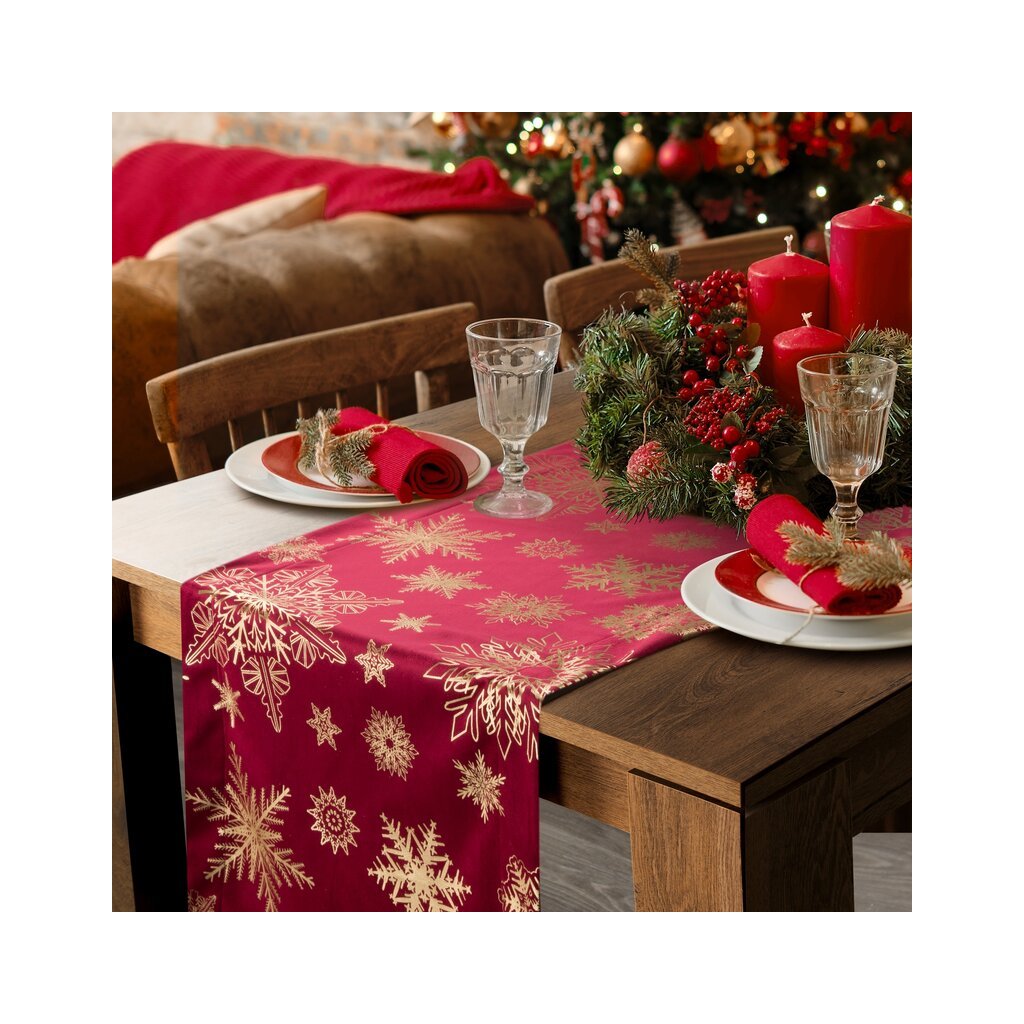 Vánoční ubrus JOY červený 40x140 cm