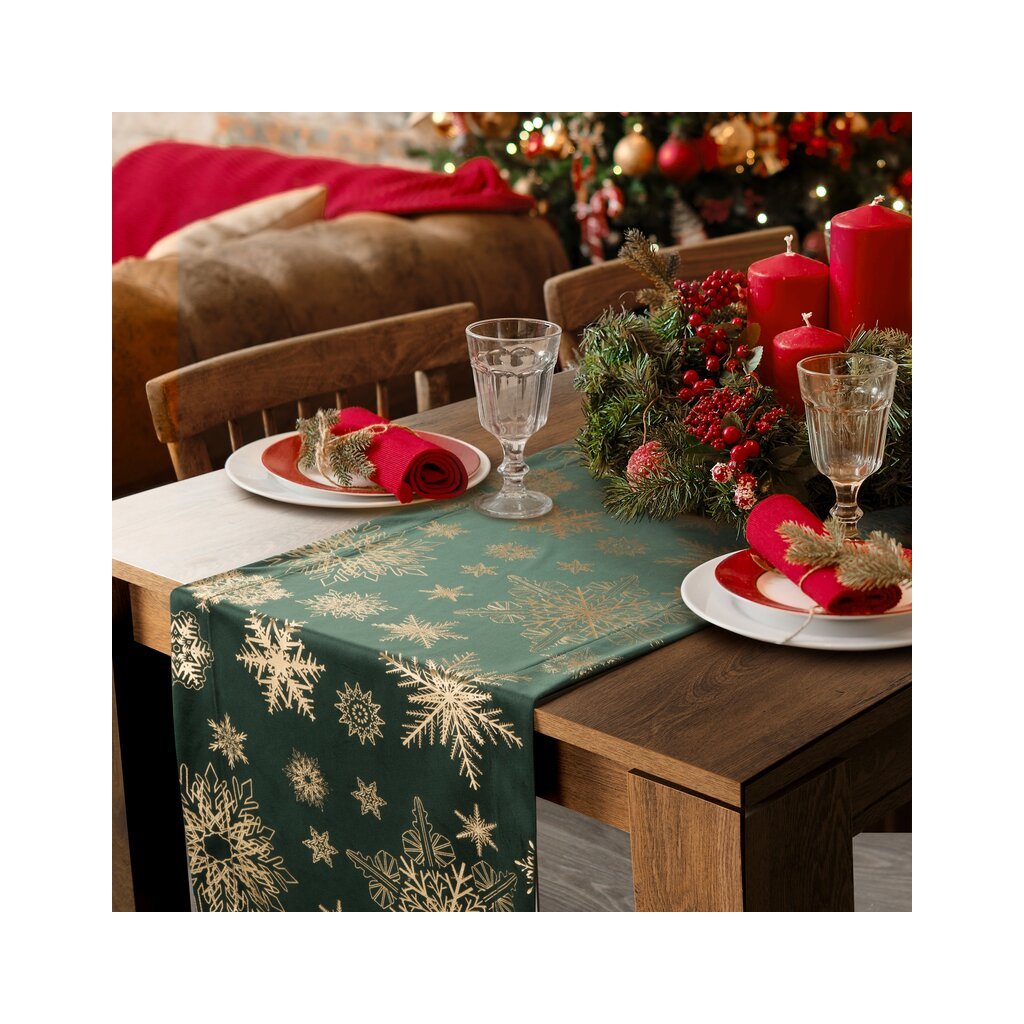 Vánoční ubrus JOY zelený 40x140 cm