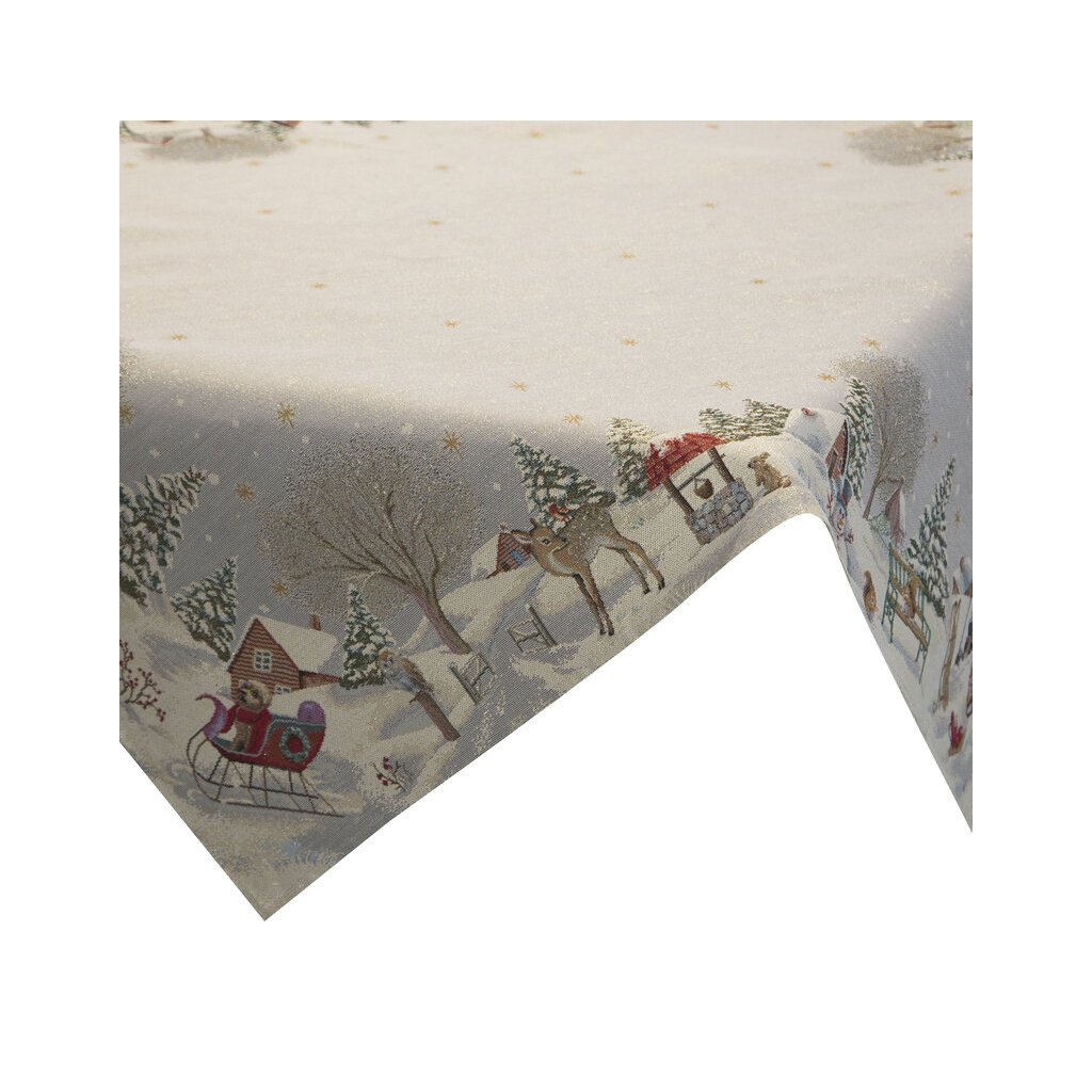 Vánoční ubrus s elegantním svátečním motivem promění váš stůl na útulné a slavnostní místo pro společné chvíle. Jemně zdobený dezén působí nadčasově a upraveně , na stole pěkně drží tvar a vytváří harmonický základ pro prostírání – od adventní snídaně až po Štědrou večeři.