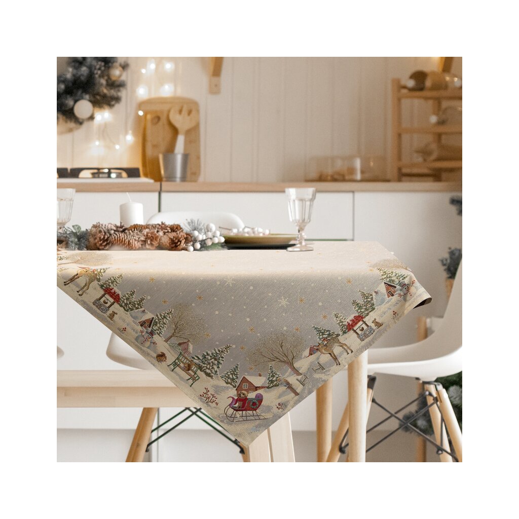 Vánoční ubrus s elegantním svátečním motivem promění váš stůl na útulné a slavnostní místo pro společné chvíle. Jemně zdobený dezén působí nadčasově a upraveně , na stole pěkně drží tvar a vytváří harmonický základ pro prostírání – od adventní snídaně až po Štědrou večeři.
