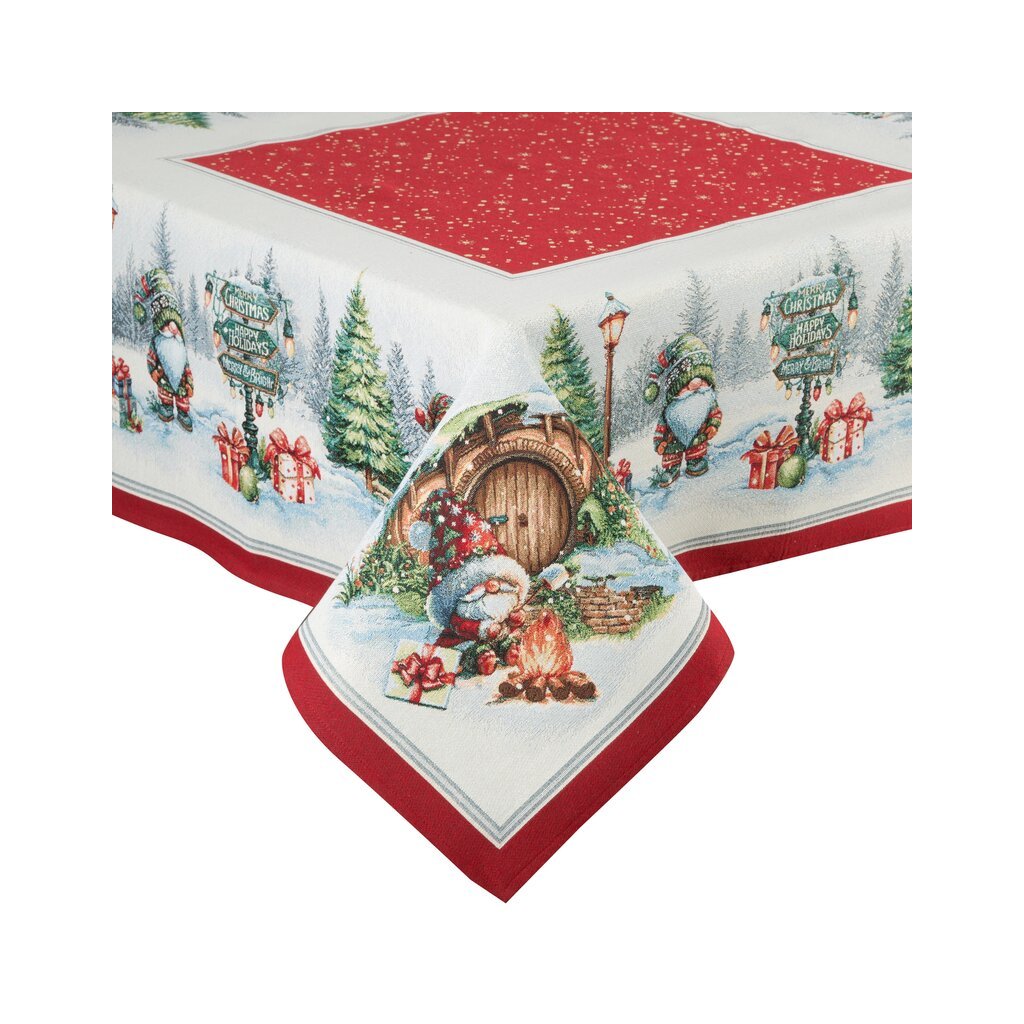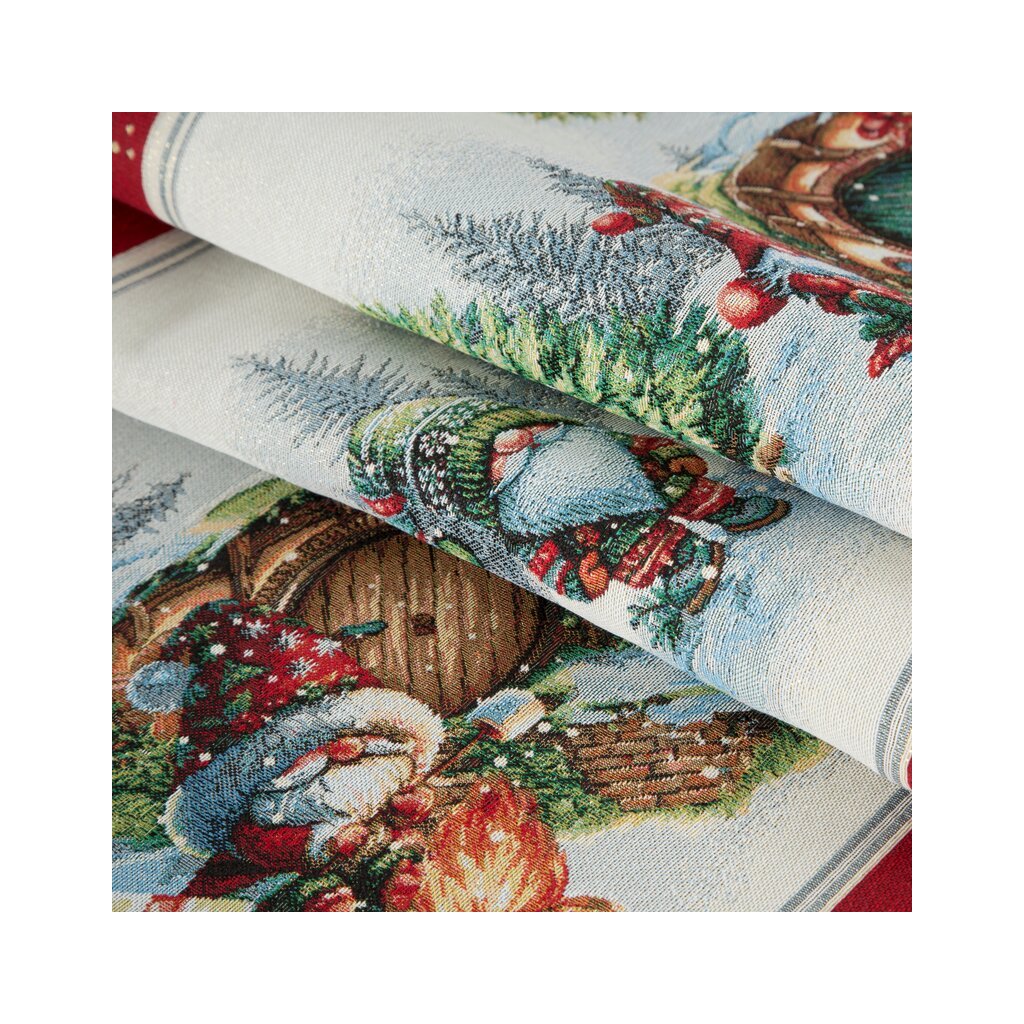 Vánoční ubrus s elegantním svátečním motivem promění váš stůl na útulné a slavnostní místo pro společné chvíle. Jemně zdobený dezén působí nadčasově a upraveně , na stole pěkně drží tvar a vytváří harmonický základ pro prostírání – od adventní snídaně až po Štědrou večeři.