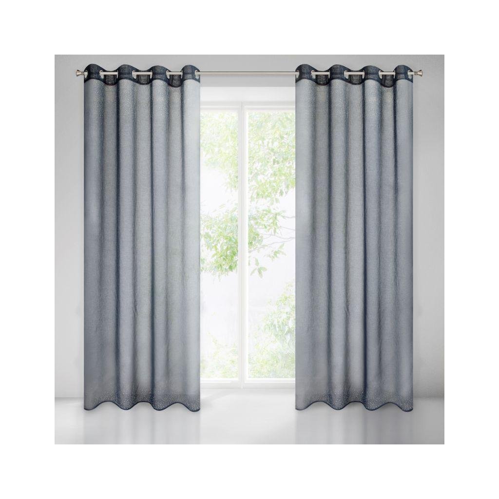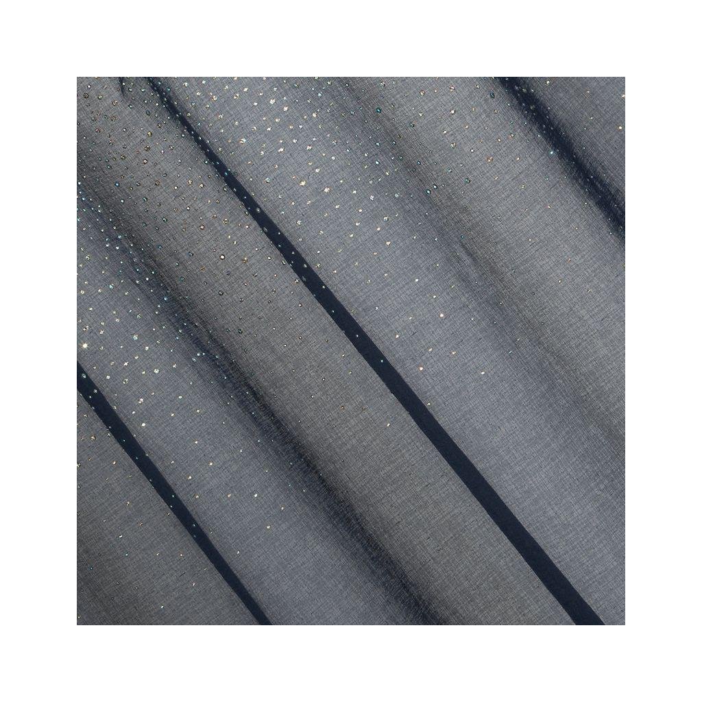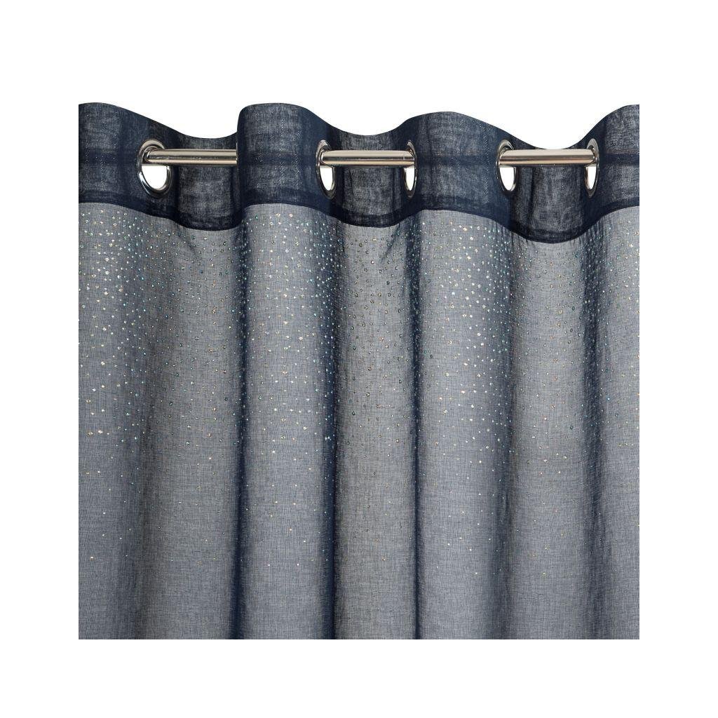 Jemná námořnická modrá záclona s moderním půvabným charakterem. Měkká, lehká látka zdobená v horní části pásem kamínků. Velmi vzdušná. Šířka 140, délka 250 cm.