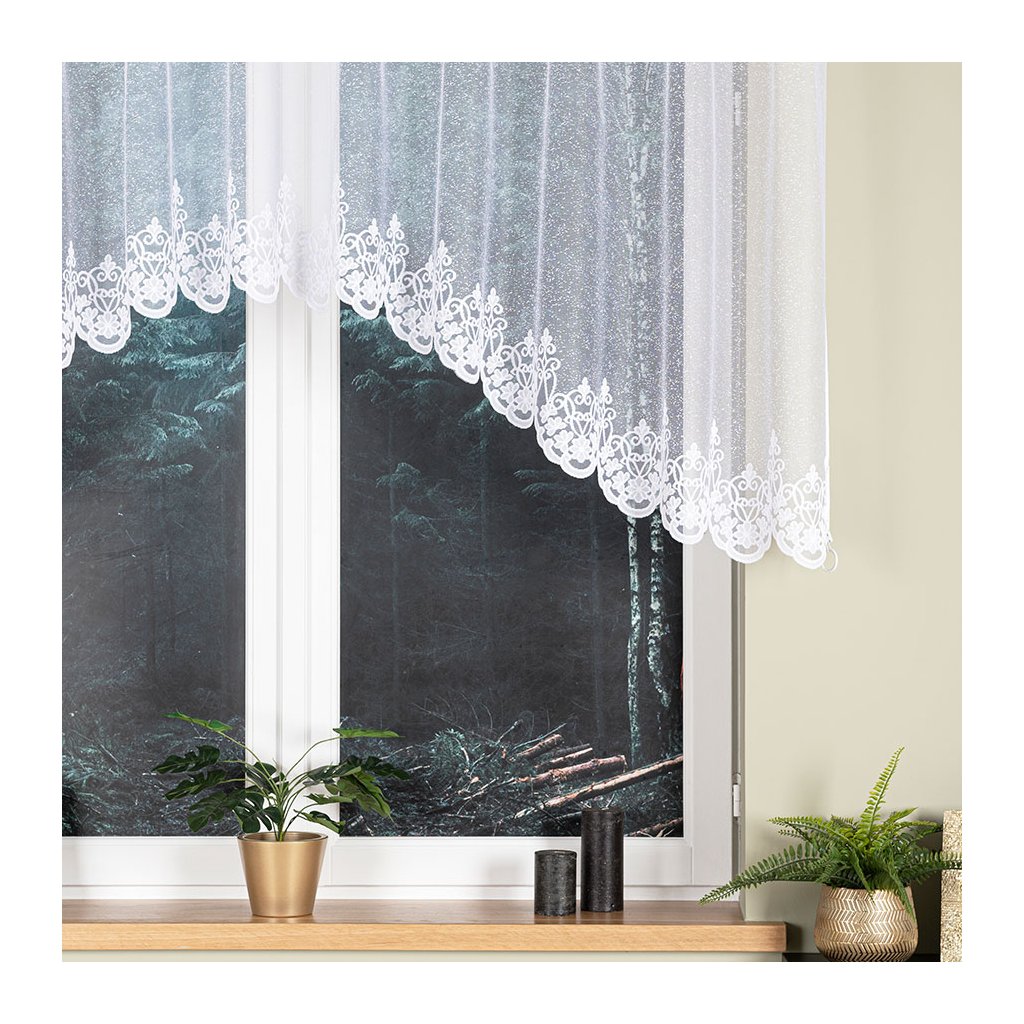 Bílá žakárová záclona ŽANETA 300x105 cm