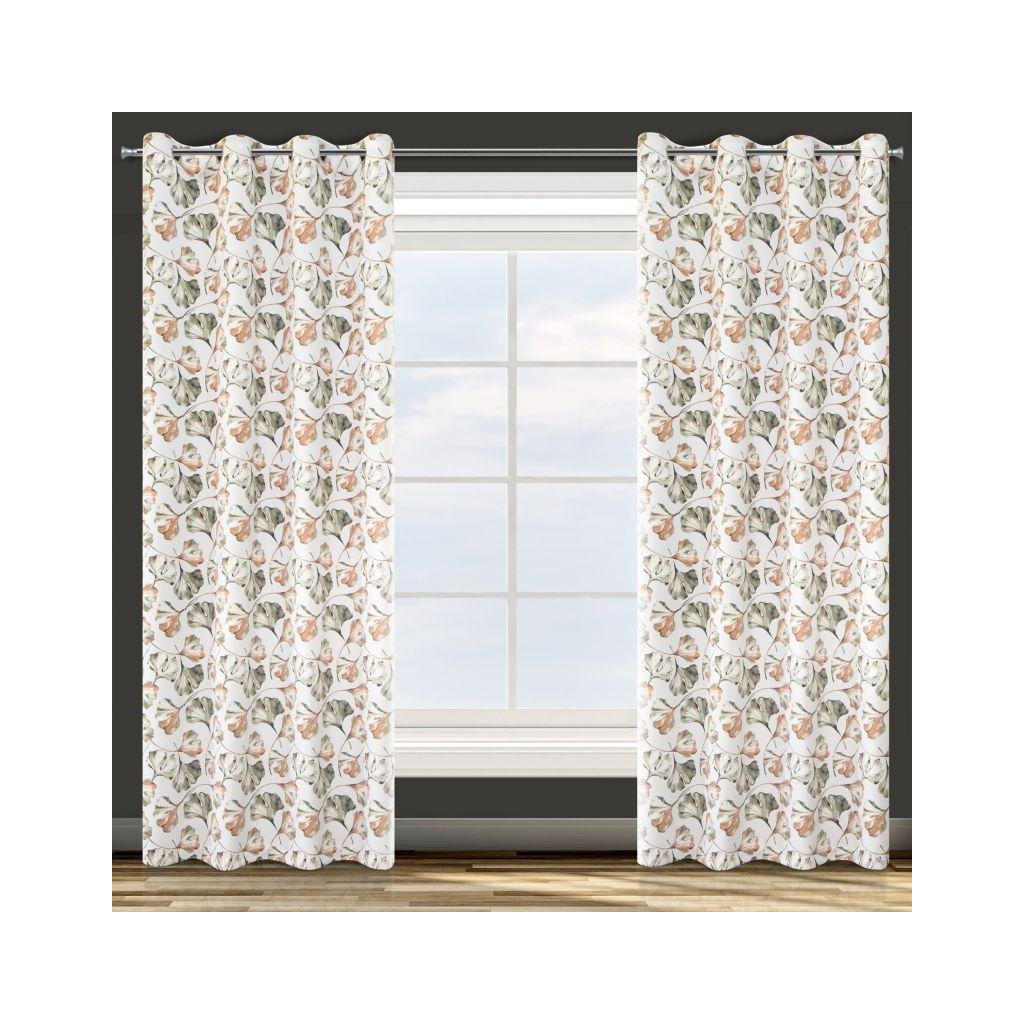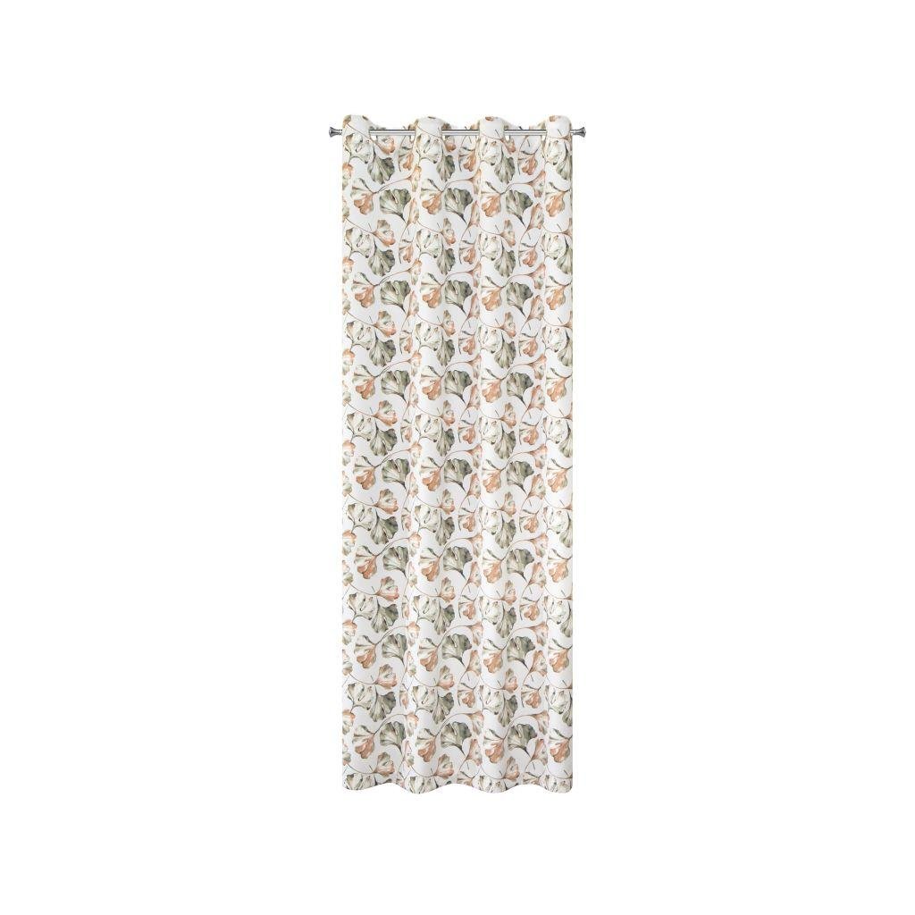 Zatemňovací závěs AIDA bílé barvy s motivem listů jinanu. Poslouží Vám i jako vynikající tepelná a zvuková izolace interiéru. Šířka: 140 cm, délka: 250 cm. Složení: 100% polyester. Snadné žehlení. Praktické zavěšení na kovové kroužky