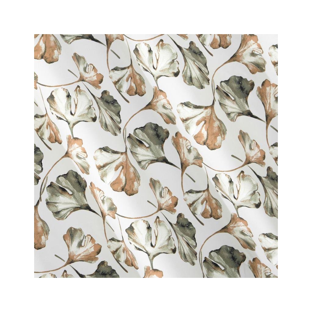 Zatemňovací závěs AIDA zdobí trendový motiv listů jinanu, vyrobený je z hrubšího a měkkého saténového zatemňovacímu materiálu, který poskytuje optimální ochranu před slunečním zářením a vnáší do interiéru příjemnou atmosféru. Motiv dokonale vyzdobí moderní i klasický interiér. Praktické kroužky v horní části závěsu dělají závěs elegantním, navíc jeho výměna nezabere mnoho času. Závěs se také vyznačuje vysokou kvalitou a pečlivou povrchovou úpravou. Závěs je potlačen pouze na jedné straně, druhá strana je v obyčejné bílé barvě.