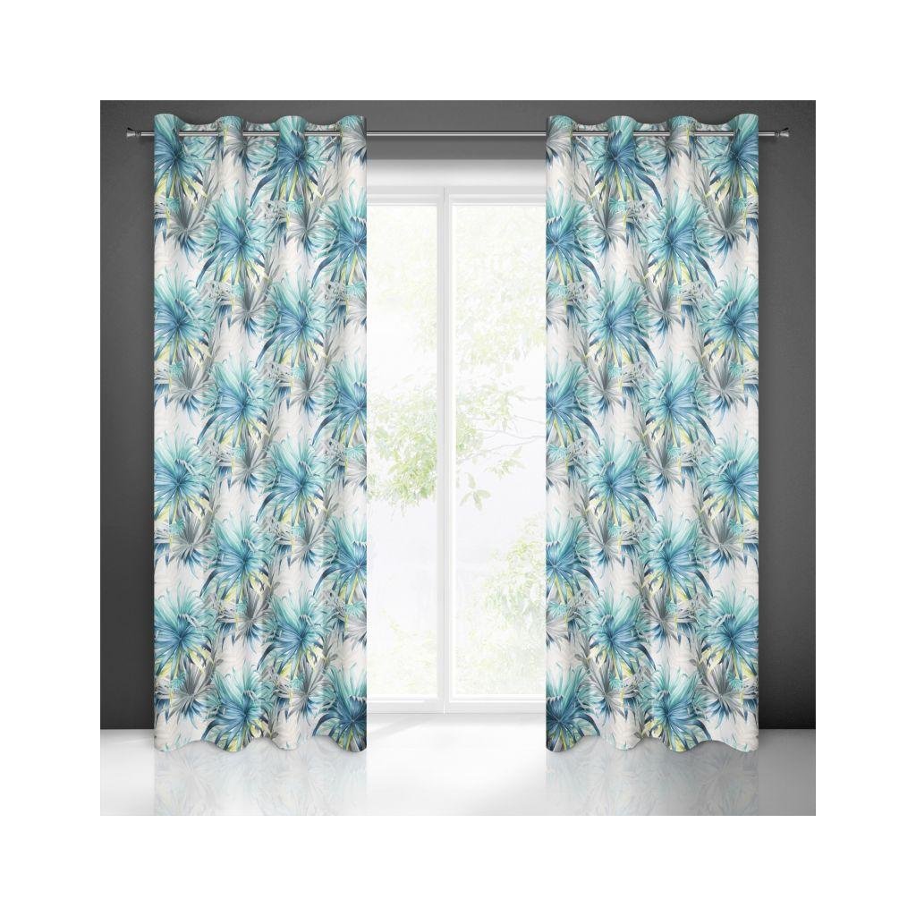 Zatemňovací závěs INGRID modré barvy se zajímavým palmovým vzorem vyroben z hustotkanej kvalitní látky. Poslouží Vám i jako vynikající tepelná a zvuková izolace interiéru. Barevný vzorovaný závěs na kroužcích s moderním designem. Rozměr: 140x250 cm.